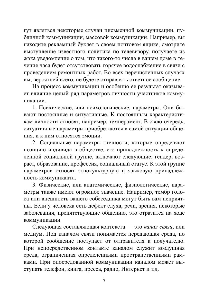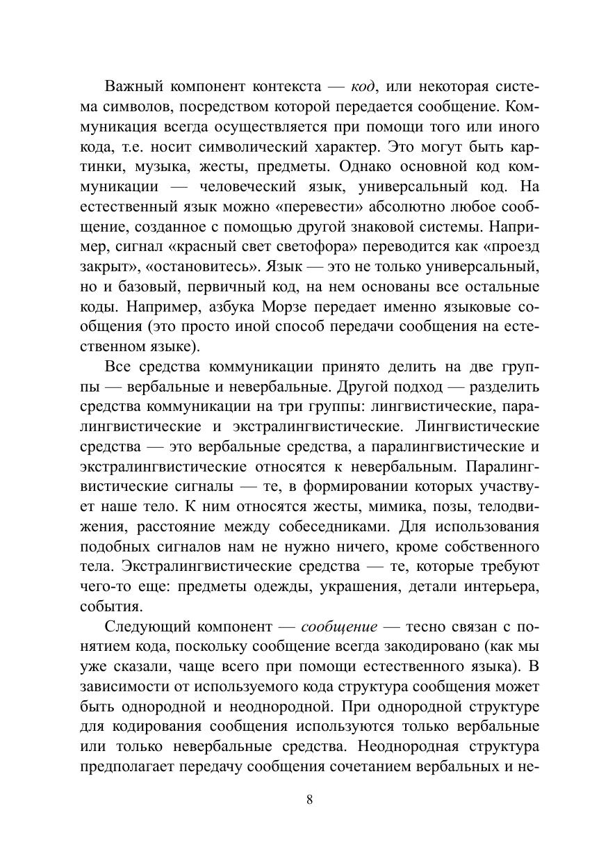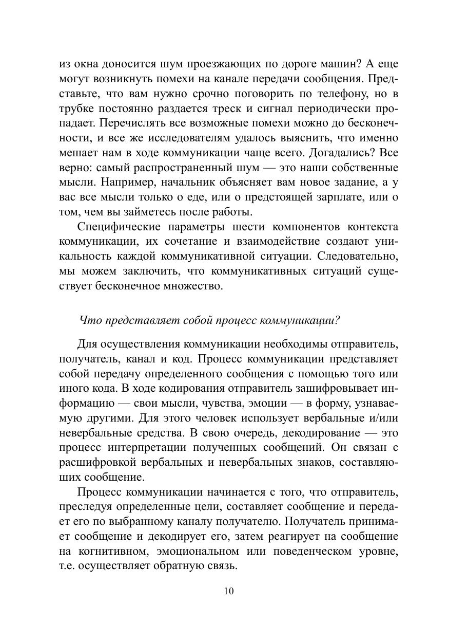Учебное пособие предлагает возможные ответы на вопрос, что является причиной коммуникативных неудач в профессиональной деятельности и повседневной жизни, помогает избегать типичных коммуникативных ловушек и добиться взаимопонимания, систематизирует возможные помехи, барьеры, шумы, препятствующие адекватному декодированию передаваемого в ходе коммуникации сообщения, начиная с чисто технических погрешностей и заканчивая вопросами несовпадения психологических, социальных, культурных параметров коммуникантов.