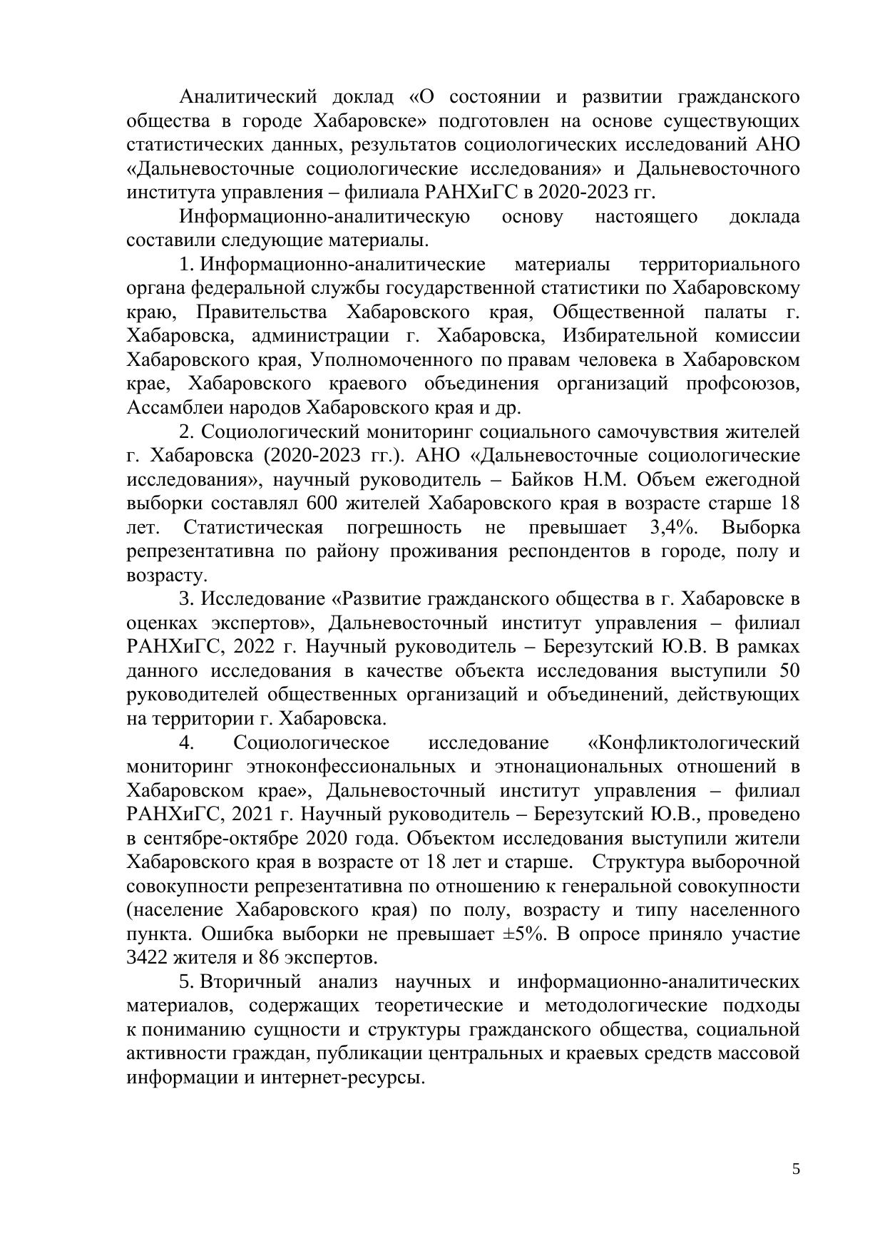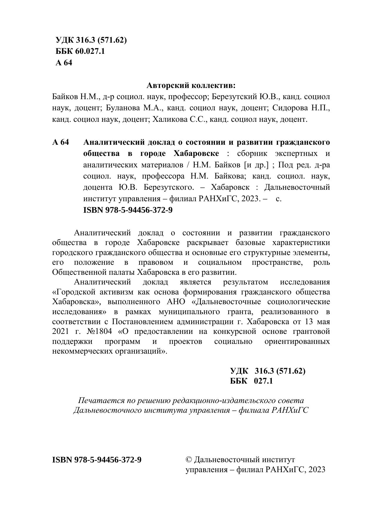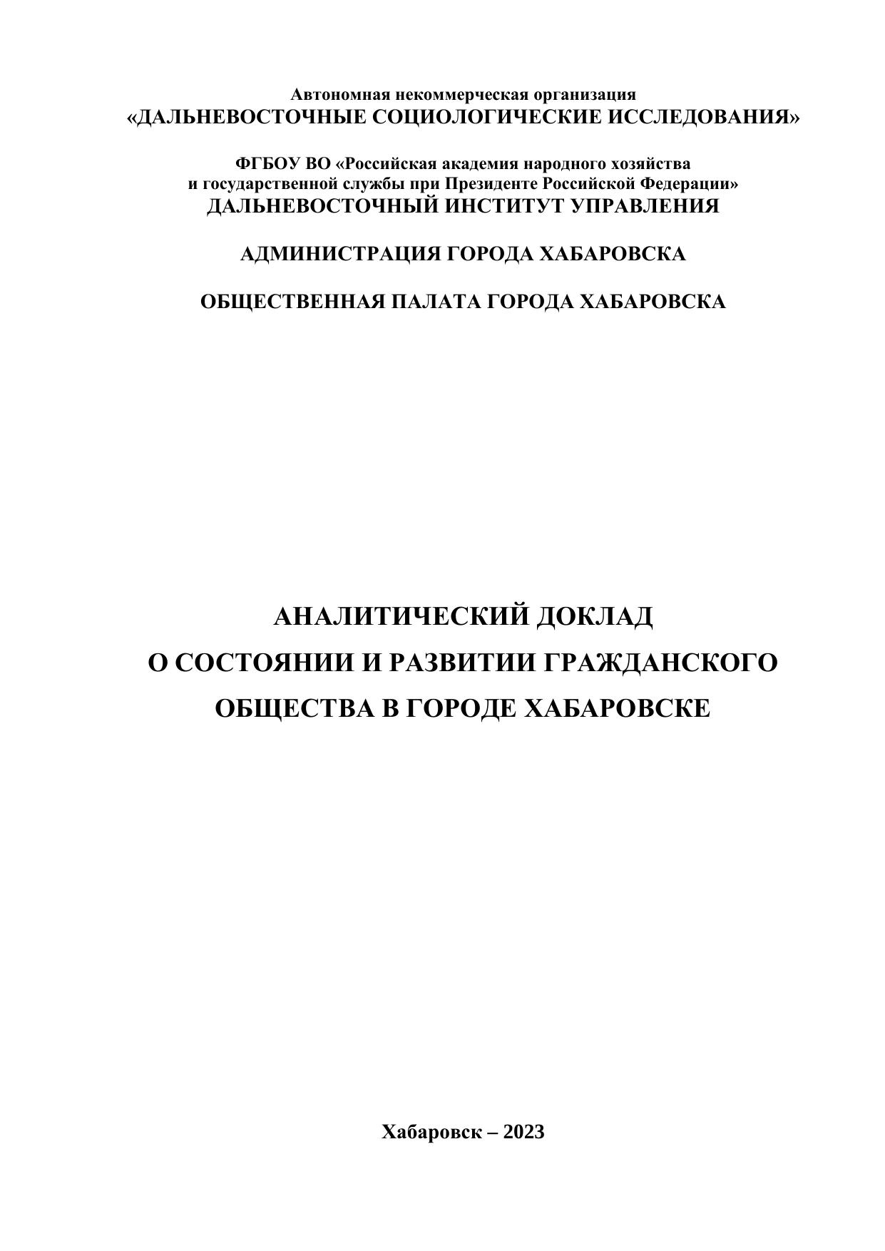 Аналитический доклад о состоянии и развитии гражданского общества в городе Хабаровске: сборник экспертных и аналитических материалов