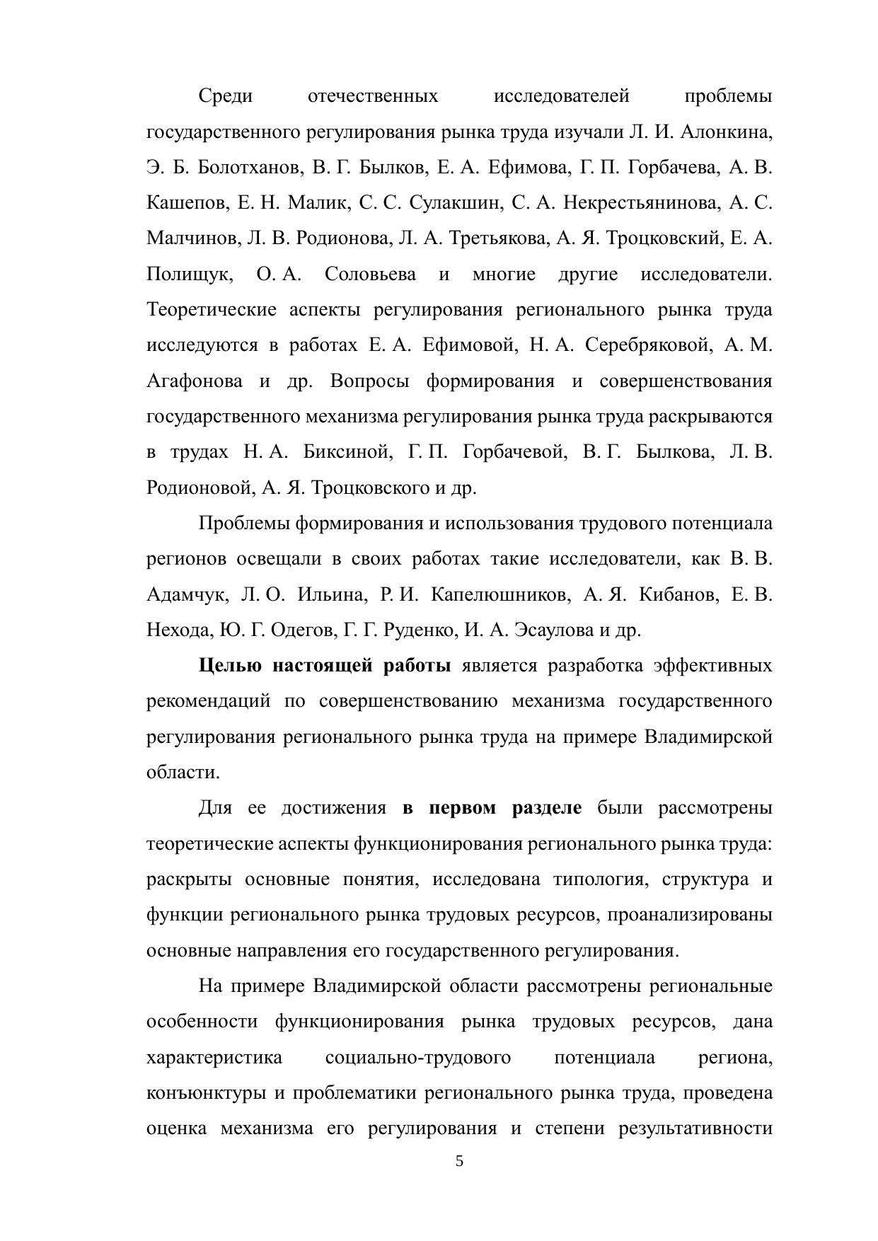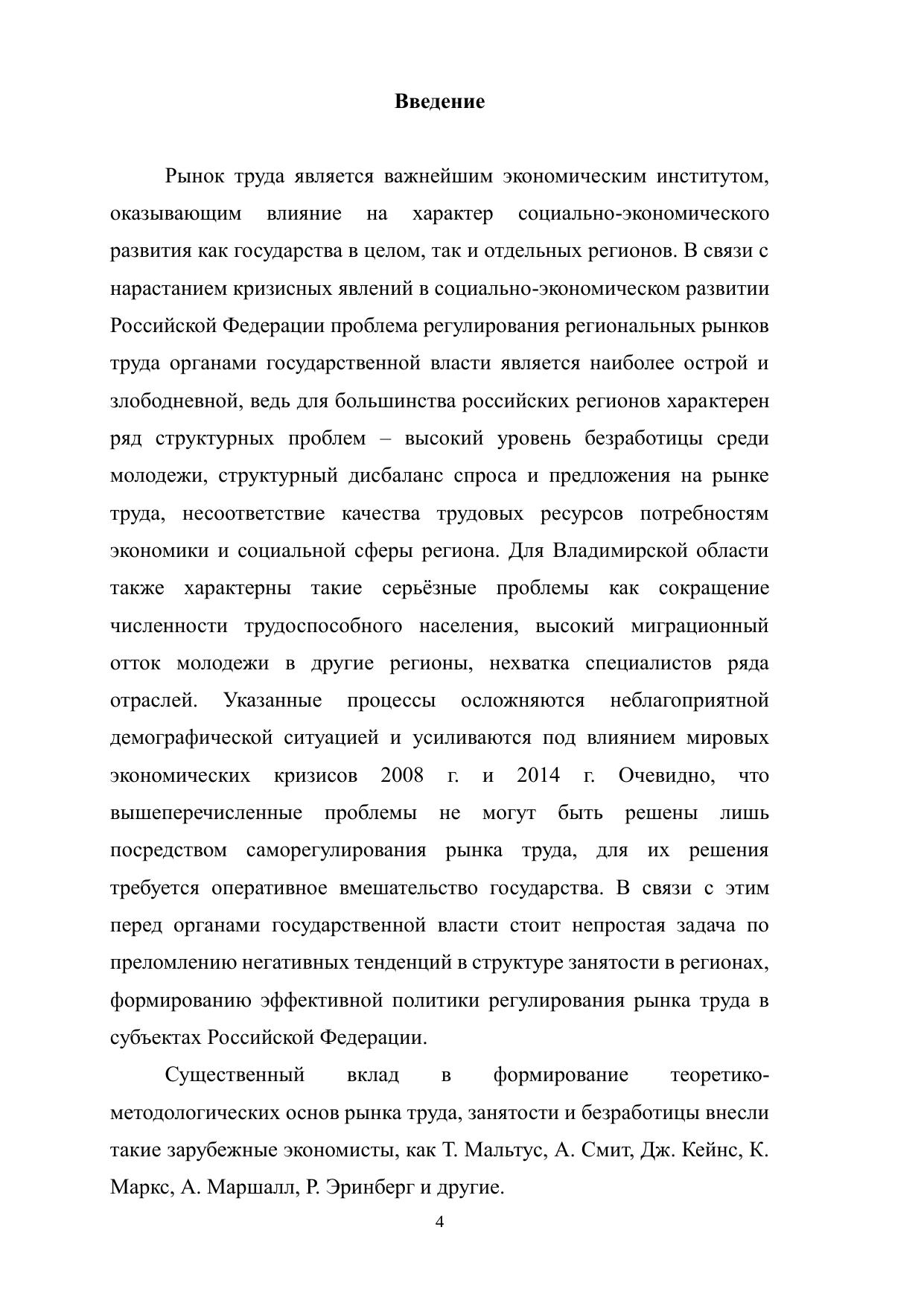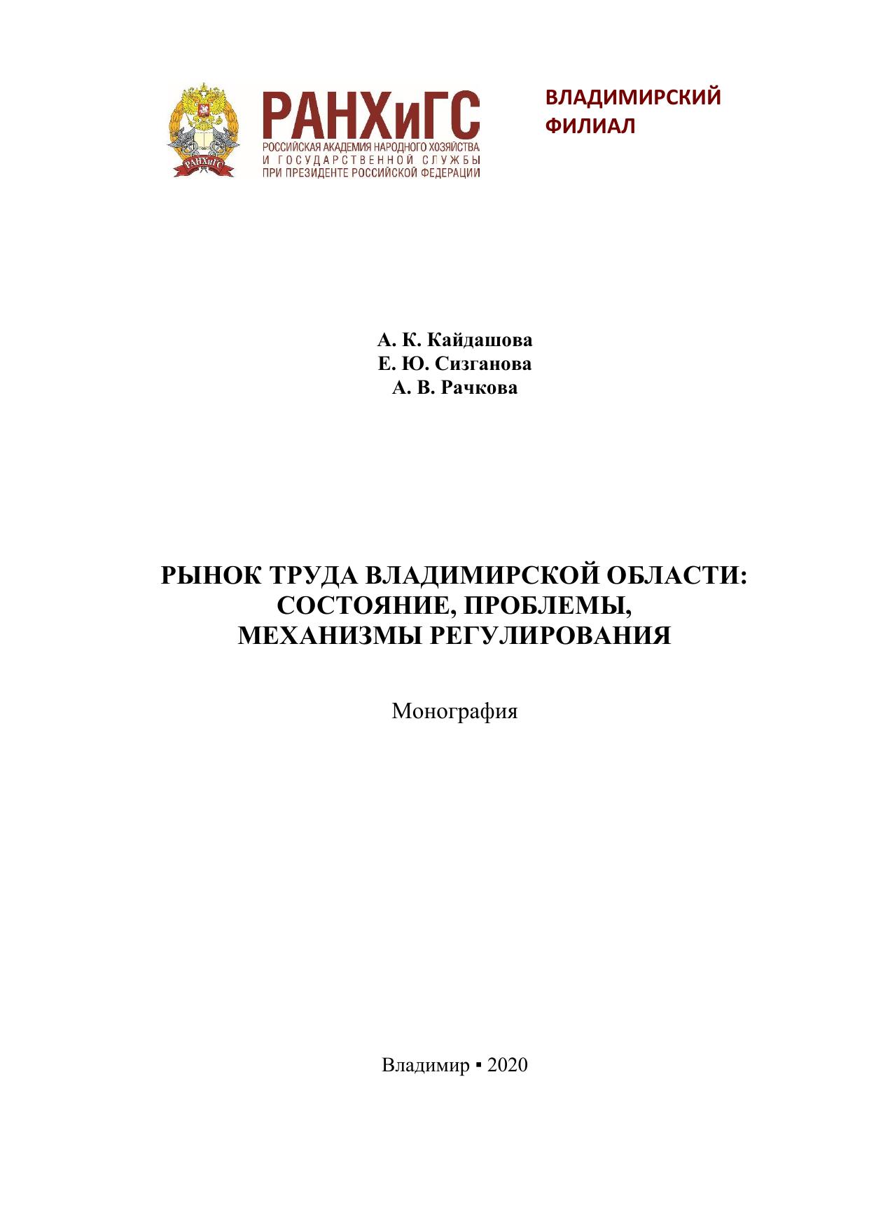 Рынок труда Владимирской области: состояние, проблемы, механизмы регулирования