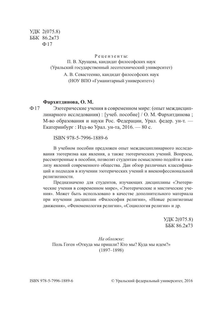 Эзотерические учения в современном: учеб. пособие