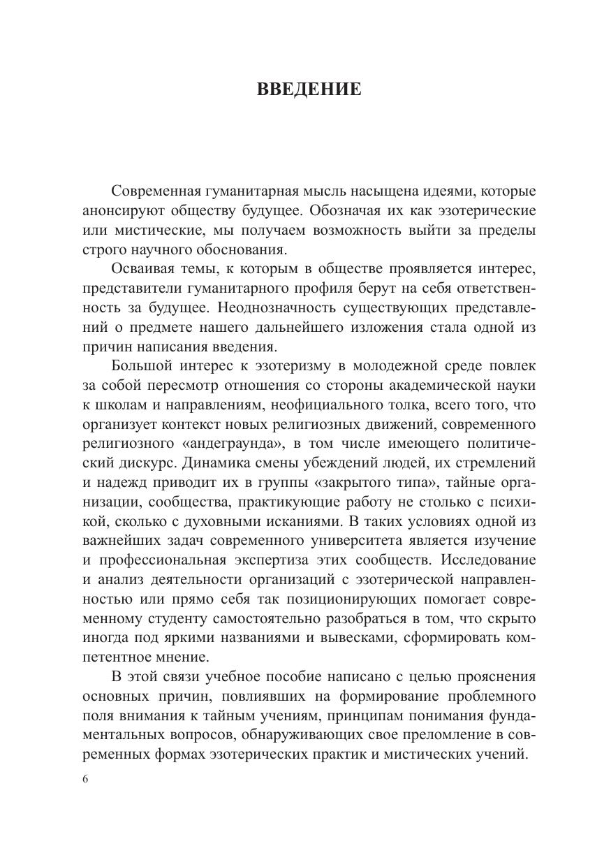 В учебном пособии предложен опыт междисциплинарного исследования эзотеризма как явления, а также эзотерических учений. Вопросы, рассмотренные в пособии, позволят студентам осмысленно подойти к анализу явлений современного общества. Дан обзор различных классификаций и подходов в изучении эзотерических учений и внеконфессиональной религиозности. Предназначено для студентов, изучающих дисциплины «Эзотерические учения в современном мире», «Эзотерические и мистические учения ». Может быть использовано в качестве дополнительного материала при изучении дисциплин «Философия религии», «Новые религиозные движения», «Феноменология религии», «Социология религии» и др.
