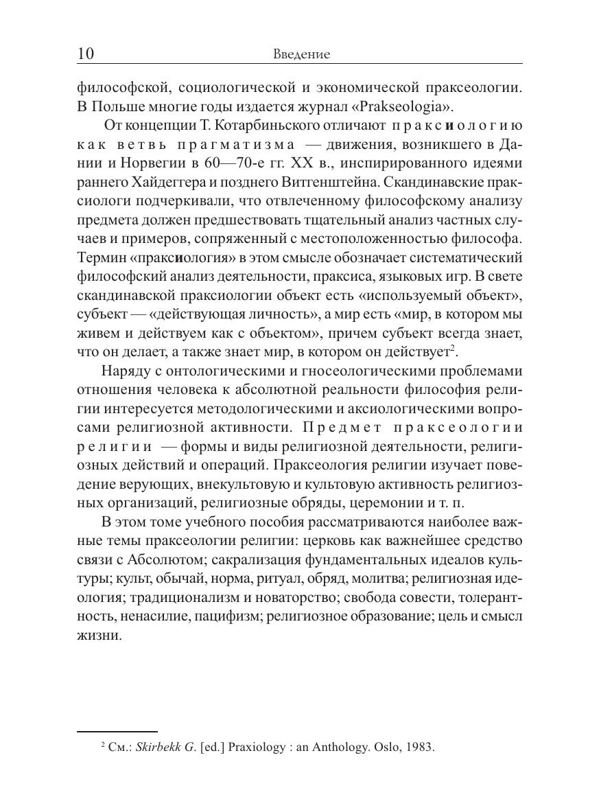 Рассматриваются основные понятия и принципы праксеологии религии. Обсуждаются типы религиозных организаций, система сакрализации базовых ценностей, роль религиозных идеалов в основании культуры, сущность духовного образования, проблема смысла жизни человека. В конце этого тома дается приложение к трехтомнику: краткая история западноевропейской философии религии XVII-XIX вв. и словарь основных терминов.