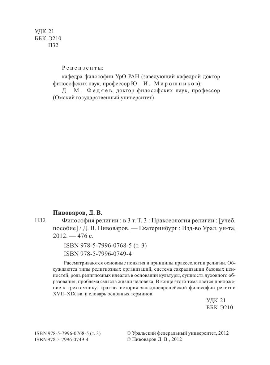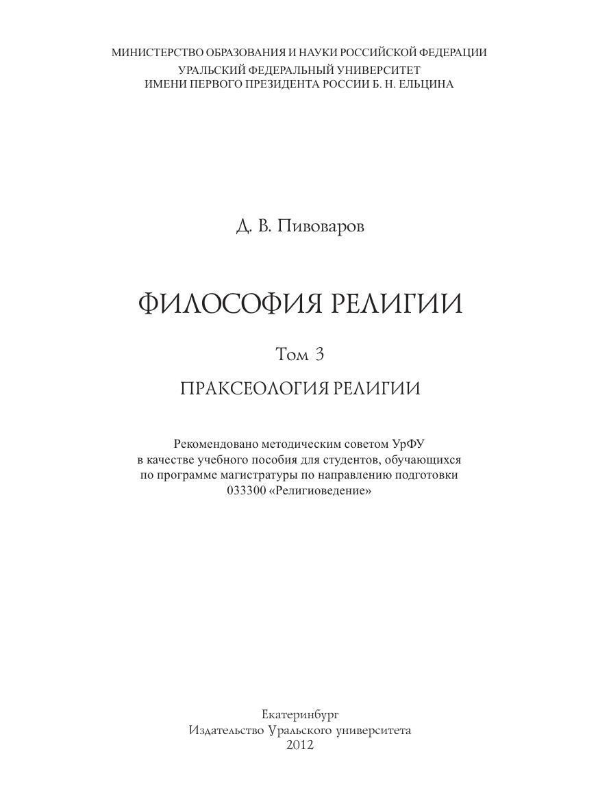 Философия религии : в 3 т. Т. 3 : Праксеология религии: учеб. пособие