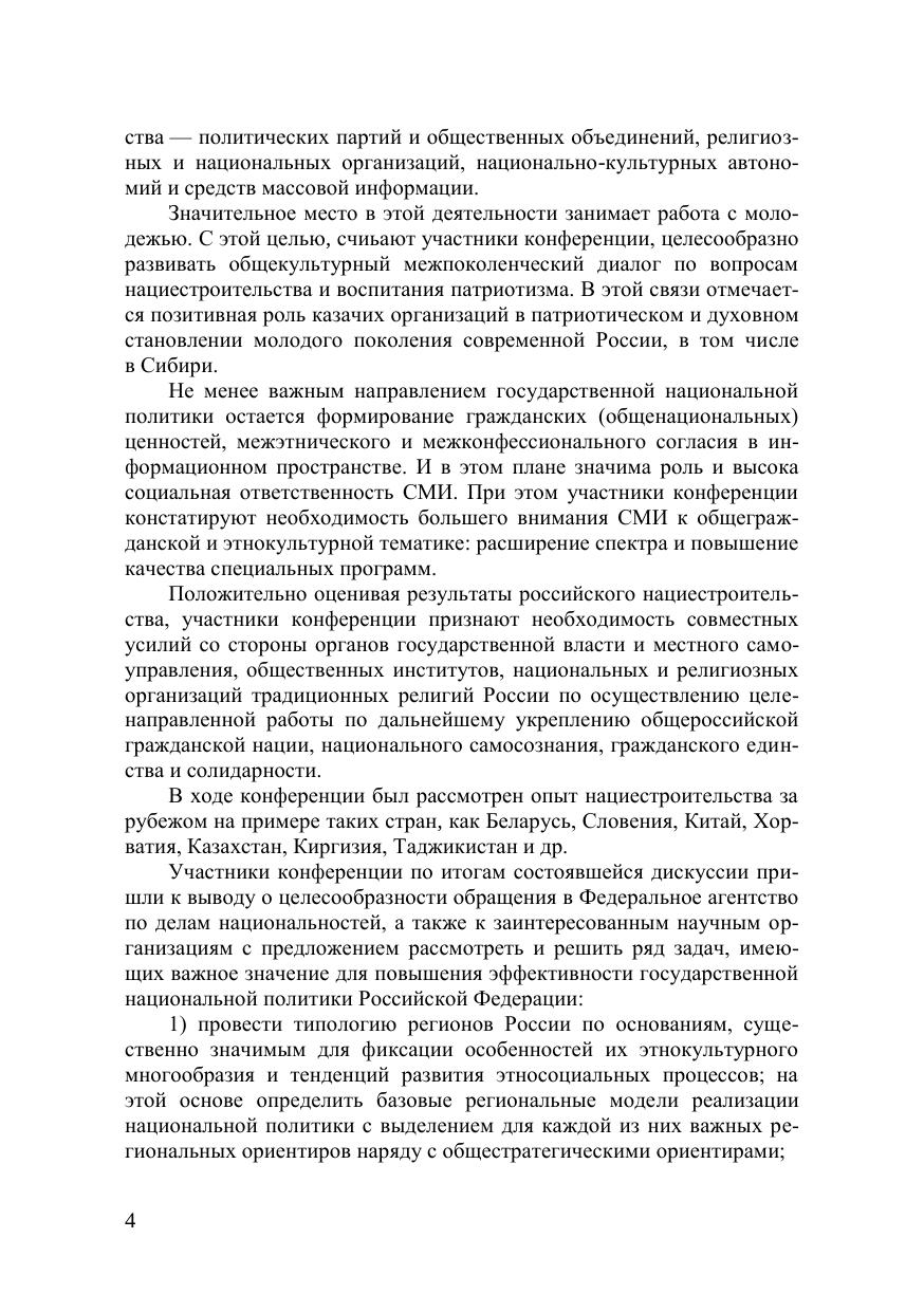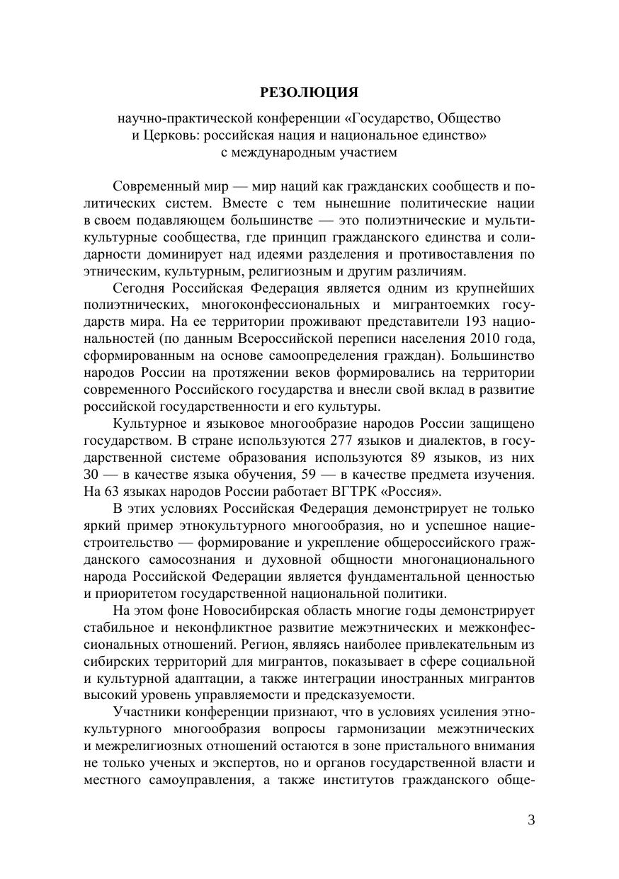 В настоящий сборник вошли материалы участников научно-практической конференции «Государство, Общество и Церковь: российская нация и нацио-нальное единство» с международным участием. Авторы рассматривают широкий круг проблем взаимодействия органов государственной власти и местного самоуправления, национально-культурных автономий, религиозных и национальных организаций по укреплению межэт-нического и межрелигиозного согласия в обществе. Основными направления-ми исследования участников конференции стали вопросы развития и укрепле-ния российской гражданской нации, национального единства и солидарности полиэтничного и многоконфессионального российского народа. Конференция прошла в рамках реализации государственной программы Новосибирской области «Развитие институтов региональной политики и граж-данского общества в Новосибирской области».