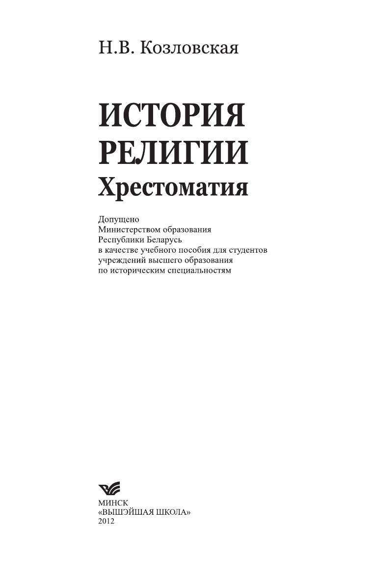Представлены тексты, входящие в состав канона национально-государственных и мировых религий, фрагменты произведений основоположников религиозных учений и наиболее авторитетных представителей конфессий, извлечения из трудов классиков мирового религиоведения, философов, социологов, историков, этнографов. Подготовлено в соответствии с типовой программой курса "История религии". Для студентов вузов по историческим специальностям.
