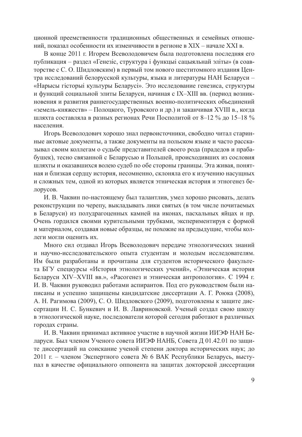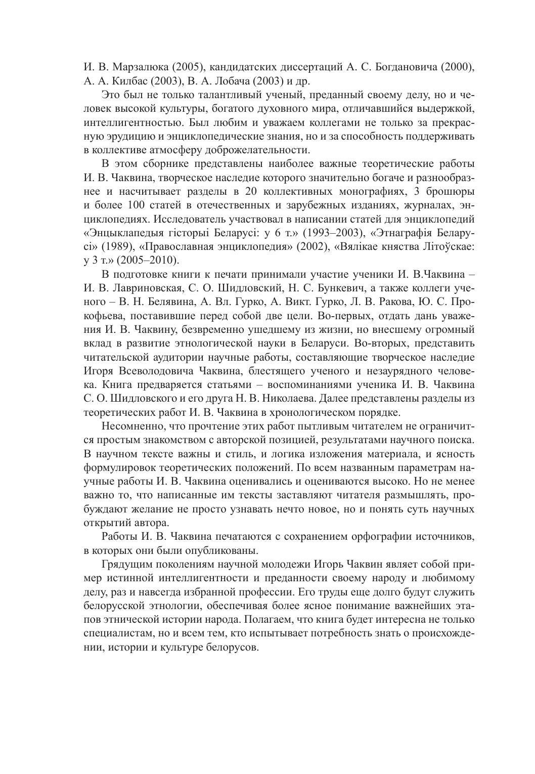 Сборник включает избранные труды недавно ушедшего из жизни талантливого ученого Игоря Всеволодовича Чаквина, который работал над сложнейшими теоретическими проблемами этнологии: этногенез и этническая история белорусов и других славянских народов, соседних с ними этносов и этнических групп, культура белорусского народа эпохи Средневековья и Нового времени, антропология древнейшего и современного населения Беларуси. В сборнике представлены наиболее важные теоретические работы И. В. Чак вина, творческое наследие которого охватывало как область фундаментальной, так и прикладной исторической и этнологической науки, а также ряд смежных дисциплин – антропологии, фольклористики, религиоведения и др. Предназначена историкам, краеведам, студентам вузов, широкому кругу читателей, интересующихся историей родного края и происхождением белорусского народа.