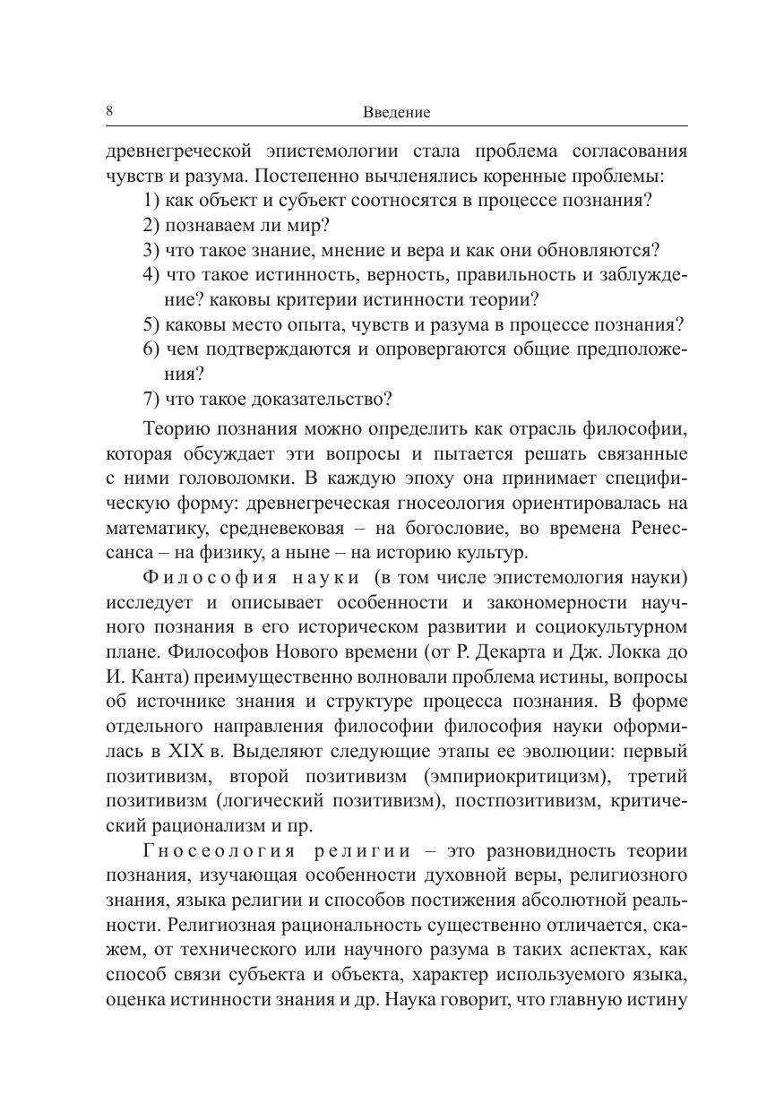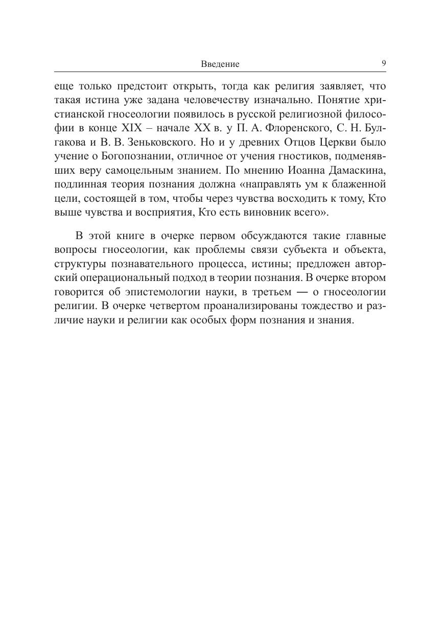 В монографии рассматриваются основные проблемы гносеологии религии: взаимоотношения субъекта и объекта, структура процесса познания, понятия истины и правды, знания и веры. Описываются специфические особенности науки, анализируется сущность религии. Исследуется диалектический характер взаимоотношений науки и религии. Для преподавателей гуманитарных дисциплин, студентов и аспирантов, изучающих систематическую философию, эпистемологию науки, гносеологию религии, а также для широкого круга читателей, интересующихся проблемой взаимосвязи науки и религии.