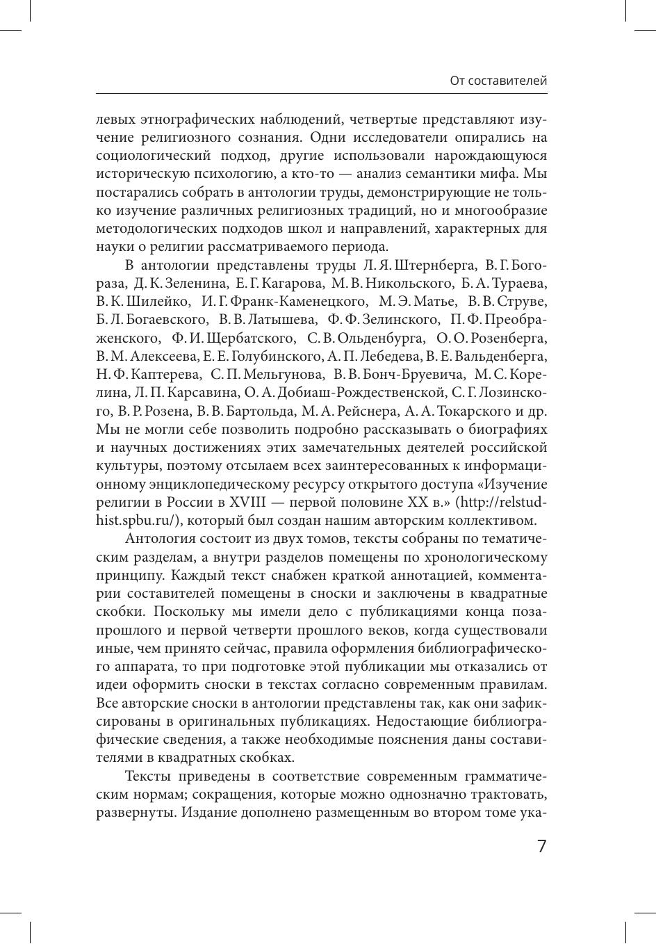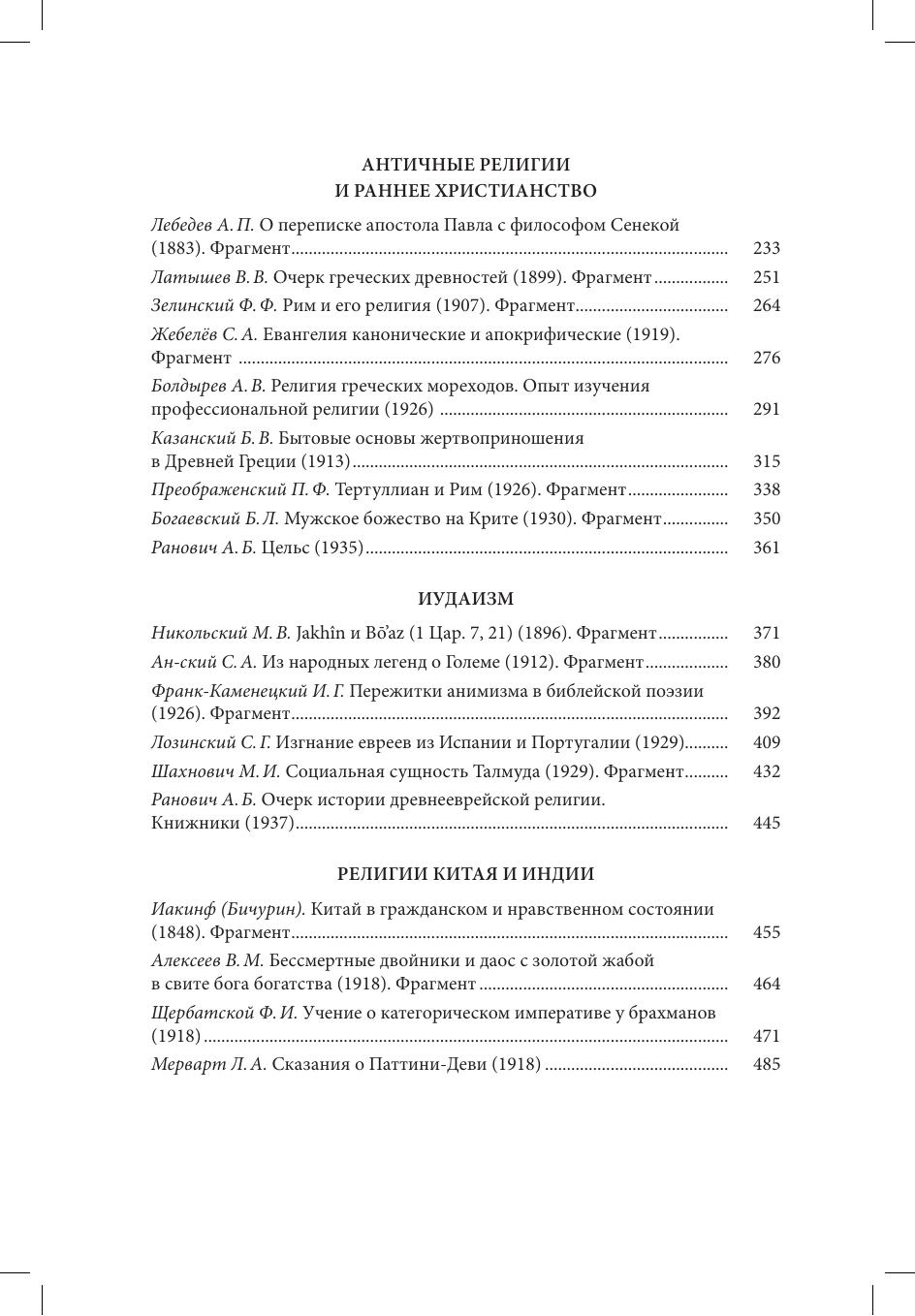 В книге собраны работы выдающихся российских исследователей религии, опубликованные впервые в конце XIX-первой трети ХХ века. Многие из них практически неизвестны современным читателям. Хотя эти труды были написаны около ста лет назад, они представляют интерес не только с точки зрения истории науки. Большое значение имеют собранные исследователями материалы, а поставленные ими продлемы сохраняют свою актуальность и сегодня. Антология может быть использована специалистами-религиоведами и студентами, а также будет полезна широкому кругу читателей, интересующихся историей религии.