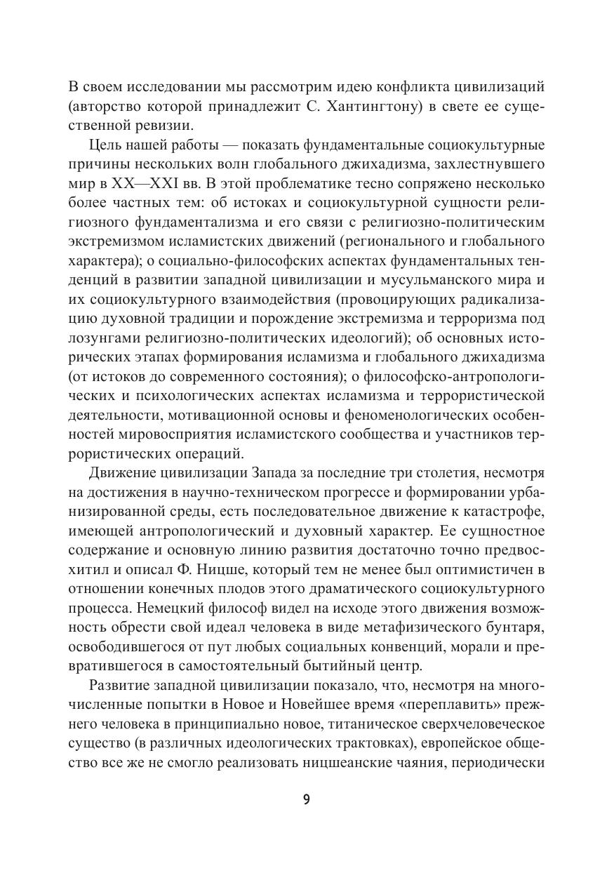 Монография посвящена проблемам зарождения радикальных религиозно-политических течений в контексте исламской культуры, их развития и трансформации на протяжении XX—XXI вв. Раскрываются фундаментальные социокультурные факторы, стимулирующие формирование и дальнейшую эволюцию исламизма от региональных форм до движения глобального джихадизма. Особенное внимание отводится феноменологическим и этическим аспектам мотивации адептов исламизма: предлагается модель, объясняющая основные категории и логику мировосприятия экстремистского сознания. Автор обосновывает подход, призванный преодолеть господствующую эмпирико-социологическую методологию в изучении радикализма, экстремизма и террористической мотивации в пользу раскрытия социально-философского и философско-антропологического измерения данных явлений.