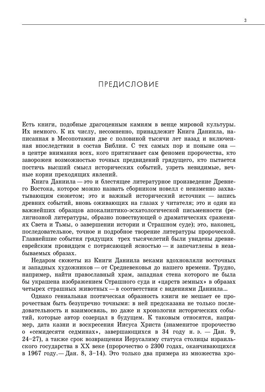 Знаменитая Книга пророка Даниила (VI век до н. э.), входящая в состав Библии, содержит предсказания о всем ходе мировой истории на 3000 лет вперед. В труде Д. В. Щедровицкого — известного отечественного теолога-библеиста, автора фундаментального «Введения в Ветхий Завет», пророчества Даниила подробно исследованы, прокомментированы и соотнесены с событиями мировой истории. Данный труд впервые знакомит читателя с огромным пластом осуществившихся пророчеств. Будучи целостно понятой, Книга Даниила позволяет увидеть общее на правление мирового развития, а также узнать о судьбах отдельных стран, народов и религий, сыгравших или призванных сыграть ключевую роль во всеобщей истории. Особый интерес представляют пророчества, относящиеся непосредственно к нашим дням и к ближайшему будущему.