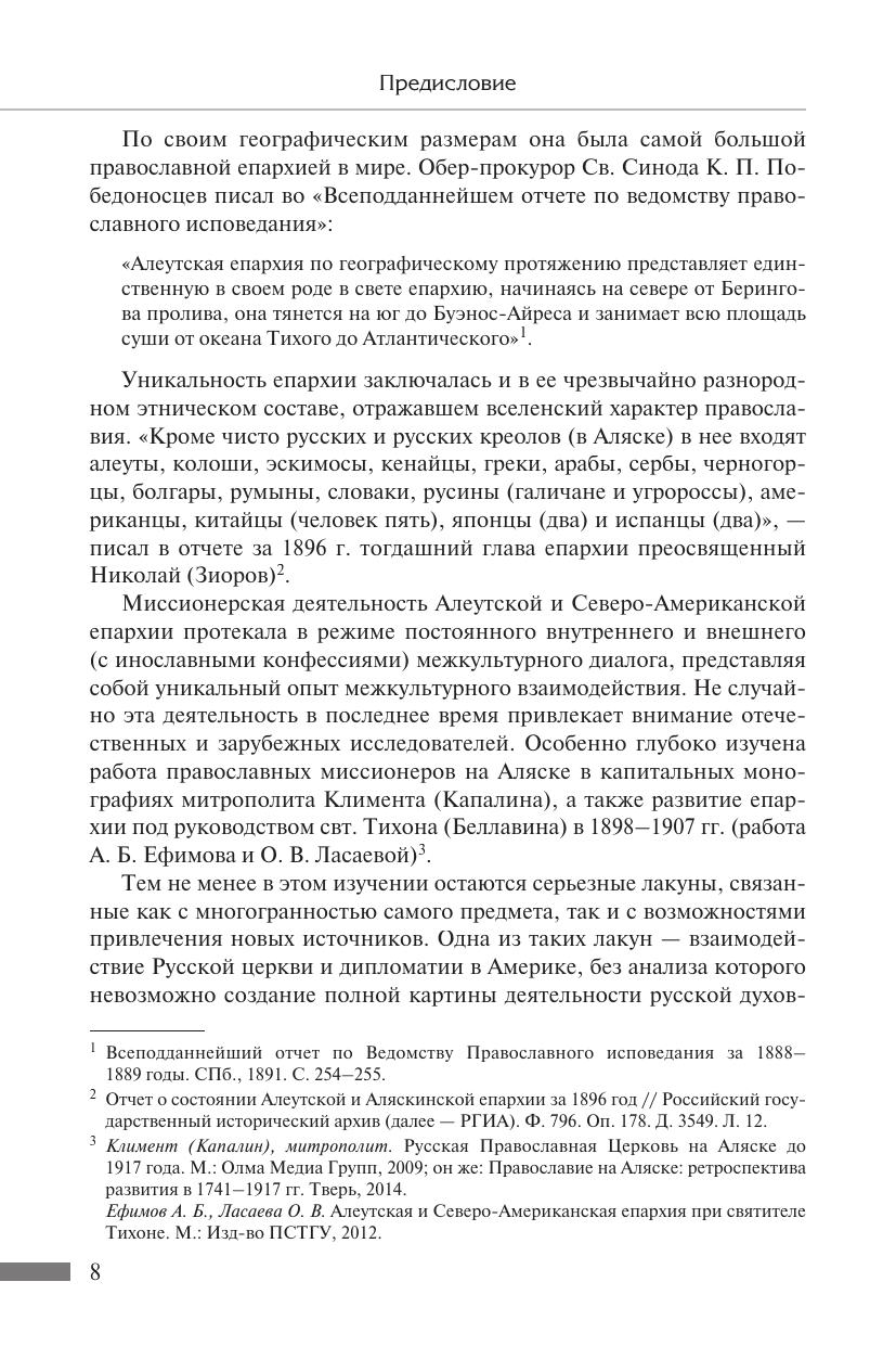В книге исследуется деятельность Русской православной церкви в США в 1867–1917 гг., когда после продажи Аляски русская духовная миссия стала самостоятельной епархией и распространилась на всю территорию США. Очерки написаны на основе нескольких тысяч документов из российских и американских архивов и описывают сотрудничество епархии с дипломатическими миссиями Российской империи в США, жизнь русского духовенства в Америке, а также судьбы конкретных представителей русской духовной миссии в США. Издание предназначено как для специалистов, так и для всех интересующихся историей Русской православной церкви и российско-американских отношений. Может быть использовано для чтения учебных курсов по этим вопросам.