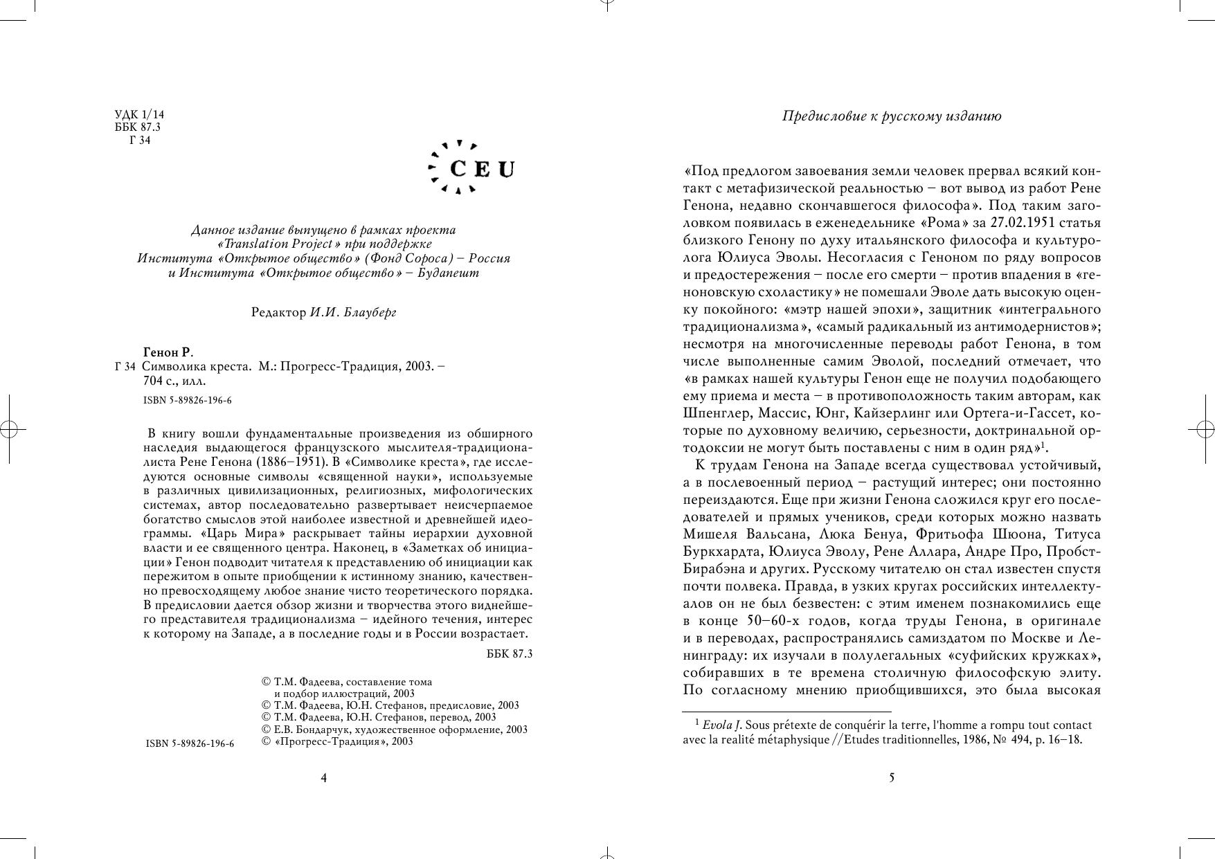В книгу вошли фундаментальные произведения из обширного наследия выдающегося французского мыслителя-традиционалиста Рене Генона (1886–1951). В "Символике креста", где исследуются основные символы "священной науки", используемые в различных цивилизационных, религиозных, мифологических системах, автор последовательно развертывает неисчерпаемое богатство смыслов этой наиболее известной и древнейшей идеограммы. "Царь Мира" раскрывает тайны иерархии духовной власти и ее священного центра. Наконец, в "Заметках об инициации" Генон подводит читателя к представлению об инициации как пережитом в опыте приобщении к истинному знанию, качественно превосходящему любое знание чисто теоретического порядка. В предисловии дается обзор жизни и творчества этого виднейшего представителя традиционализма – идейного течения, интерес к которому на Западе, а в последние годы и в России возрастает.