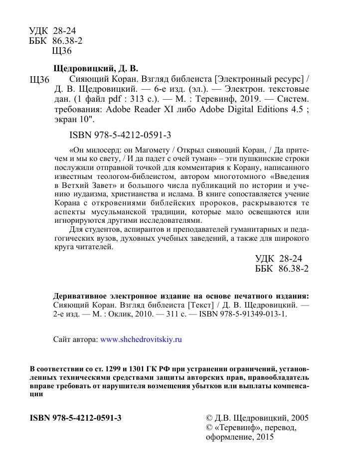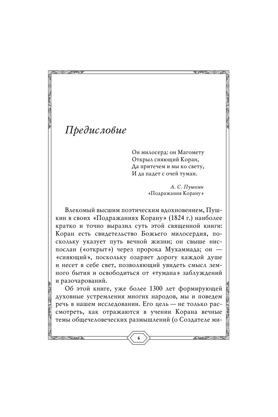 «Он милосерд: он Магомету / Открыл сияющий Коран, / Да притечем и мы ко свету, / И да падет с очей туман» — эти пушкинские строки послужили отправной точкой для комментария к Корану, написанного известным теологом библеистом, автором многотомного «Введения в Ветхий Завет» и большого числа публикаций по истории и учению иудаизма, христианства и ислама. В книге сопоставляется учение Корана с откровениями библейских пророков, раскрываются те аспекты мусульманской традиции, которые мало освещаются или игнорируются другими исследователями.