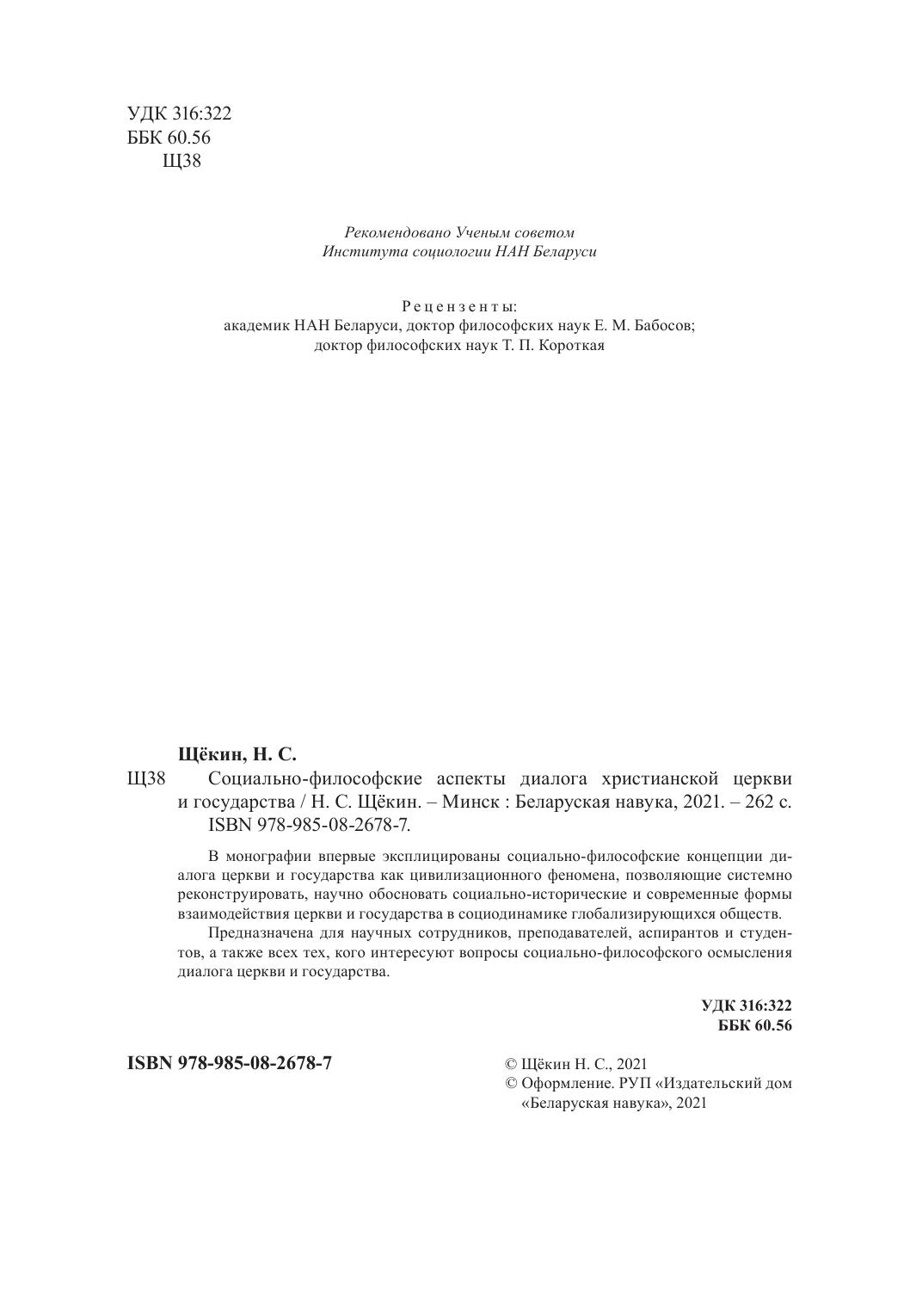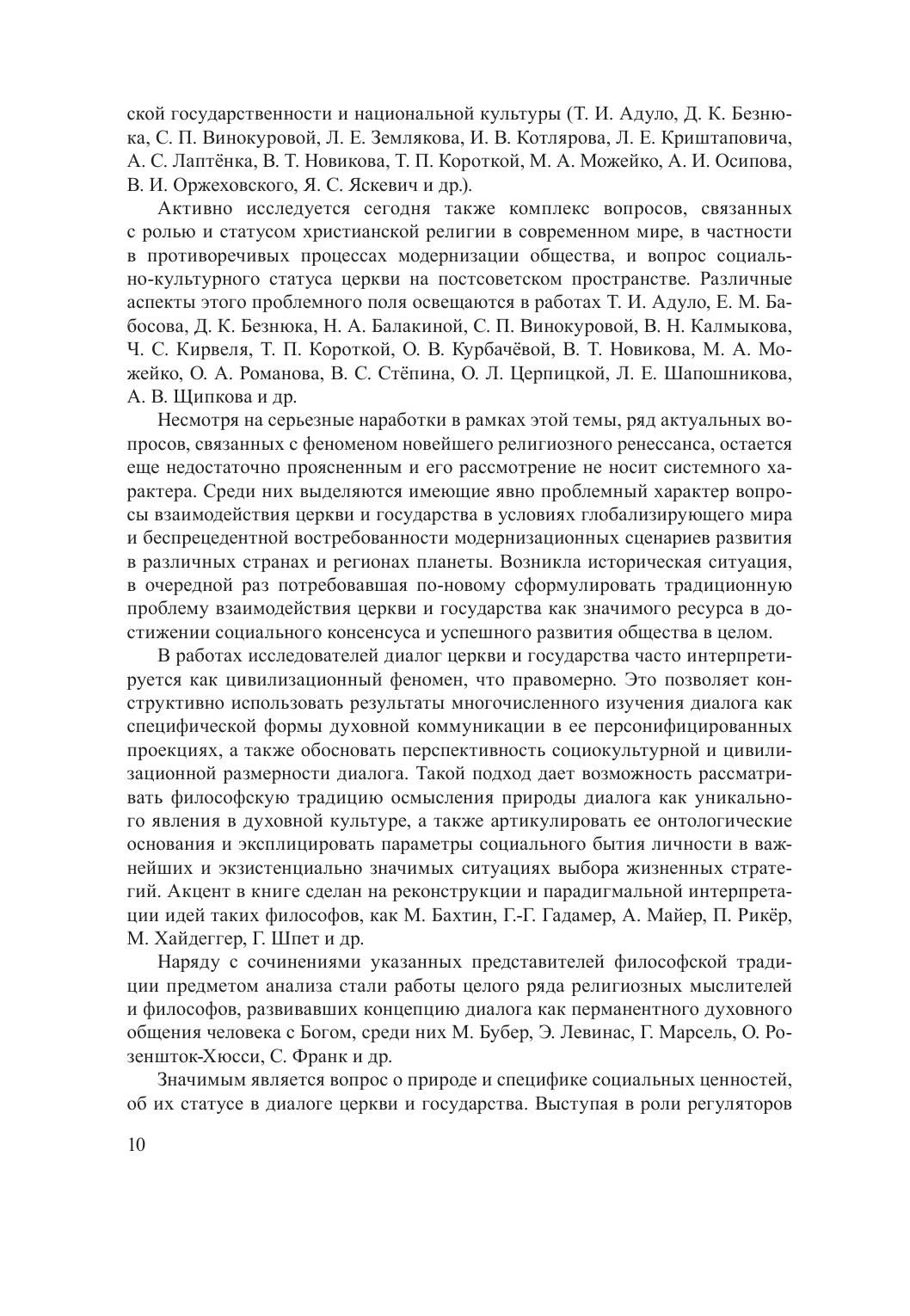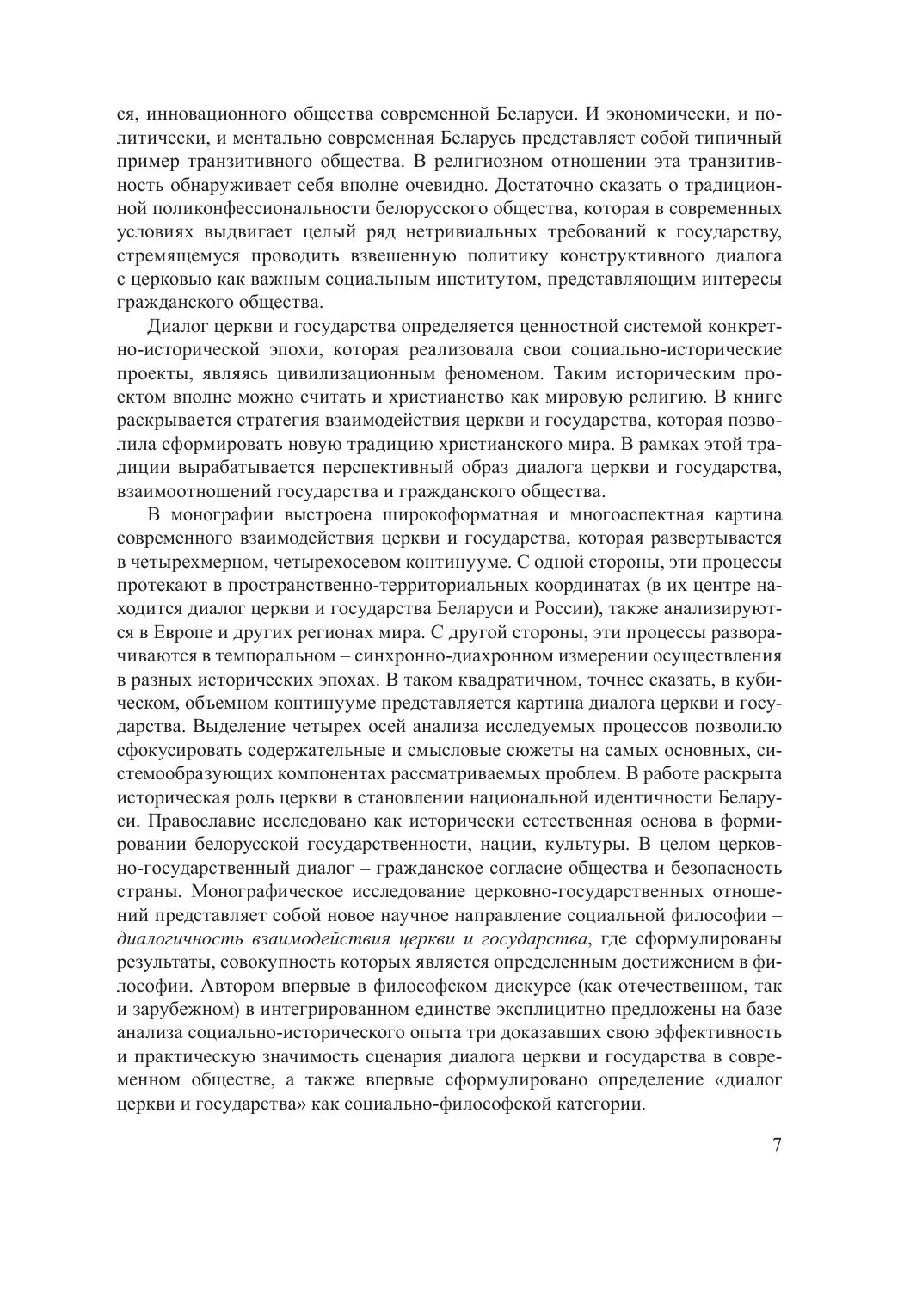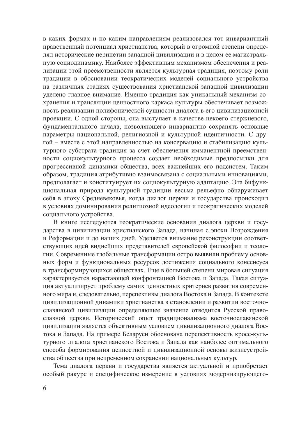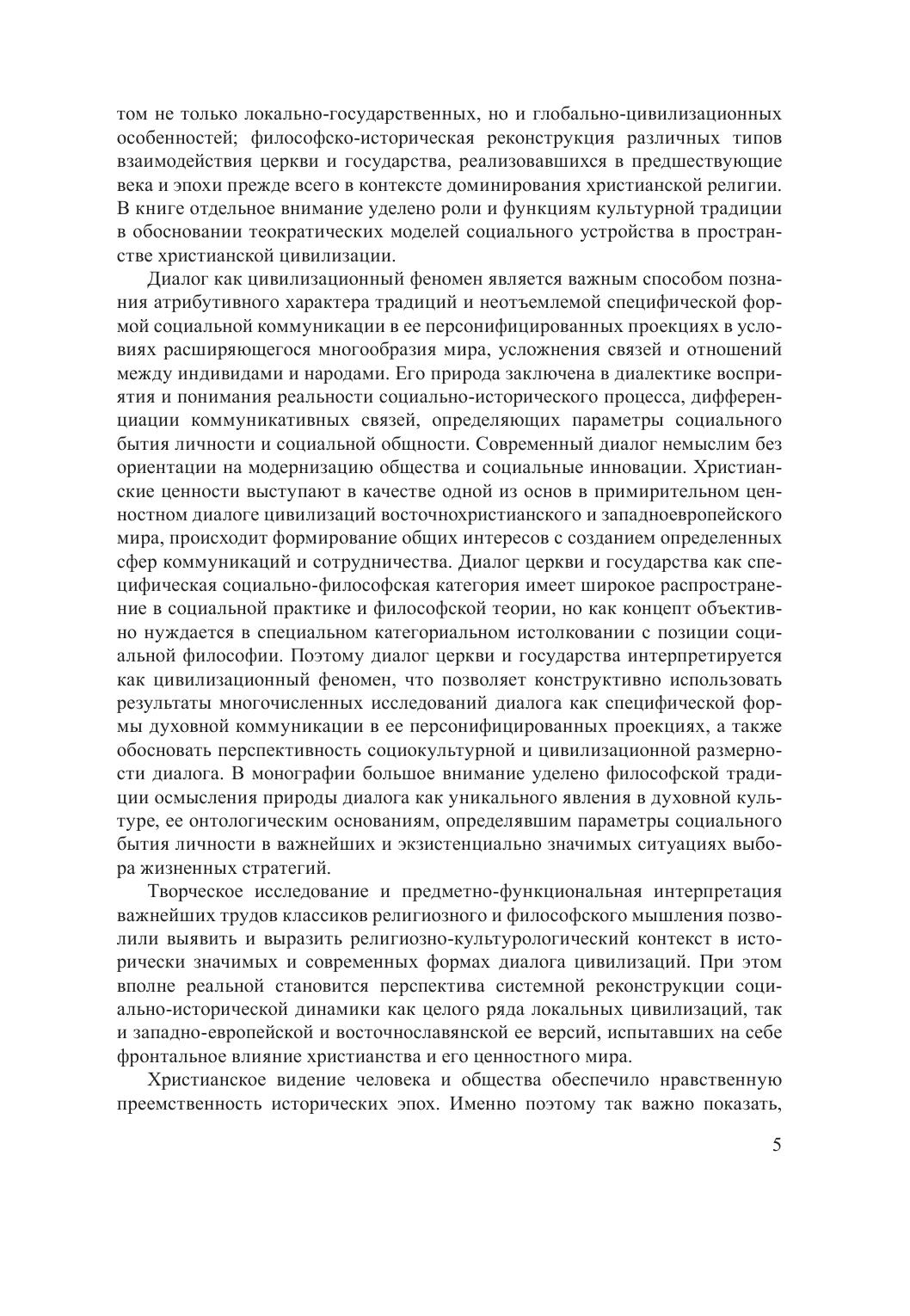 В монографии впервые эксплицированы социально-философские концепции диалога церкви и государства как цивилизационного феномена, позволяющие системно реконструировать, научно обосновать социально-исторические и современные формы взаимодействия церкви и государства в социодинамике глобализирующихся обществ.