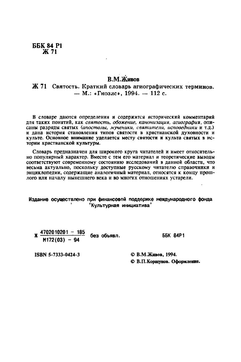В словаре даются определения и содержится исторический комментарий для таких понятий, как святость, обожение, канонизация, агиография , описаны разряды святых ( апостолы, мученики, святители, исповедники и т. д.) и дана история становления типов святости в христианской духовности и культе. Основное внимание уделяется месту святости и культа святых в истории христианской культуры. Словарь предназначен для широкого круга читателей и имеет относительно популярный характер. Вместе с тем его материал и теоретические выводы соответствуют современному состоянию исследований в данной области, что весьма актуально, поскольку доступные русскому читателю справочники и энциклопедии, содержащие аналогичный материал, относятся к концу прошлого или началу нынешнего века и во многих отношениях устарели.