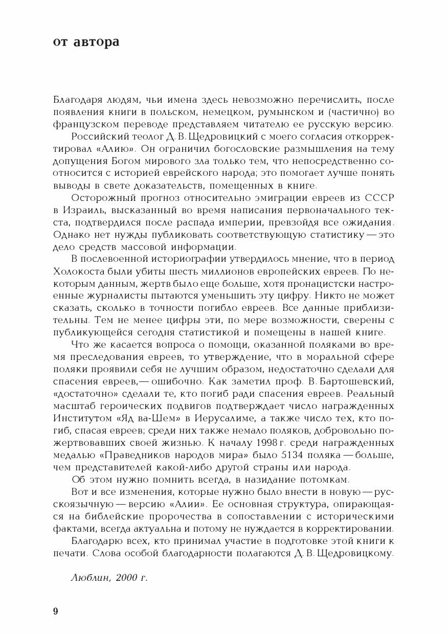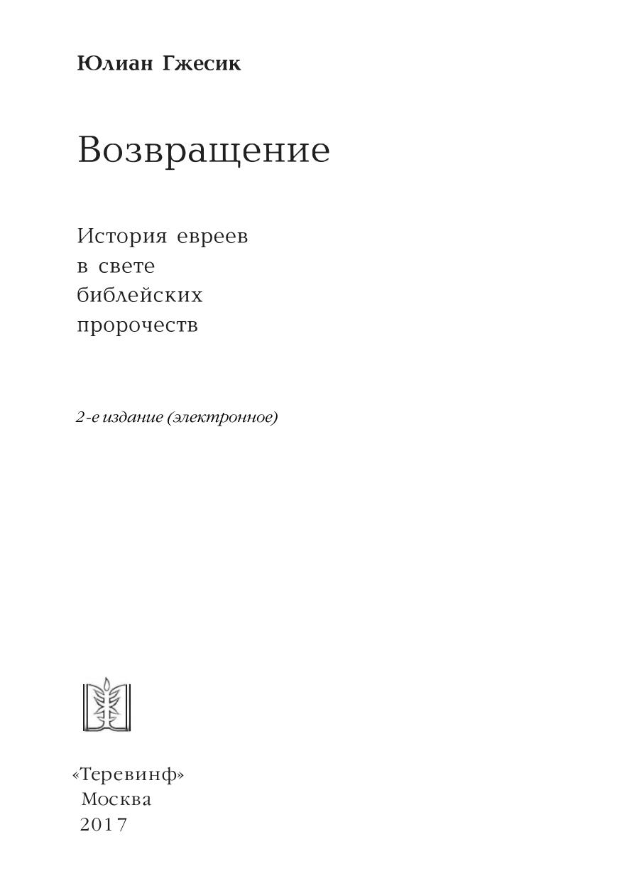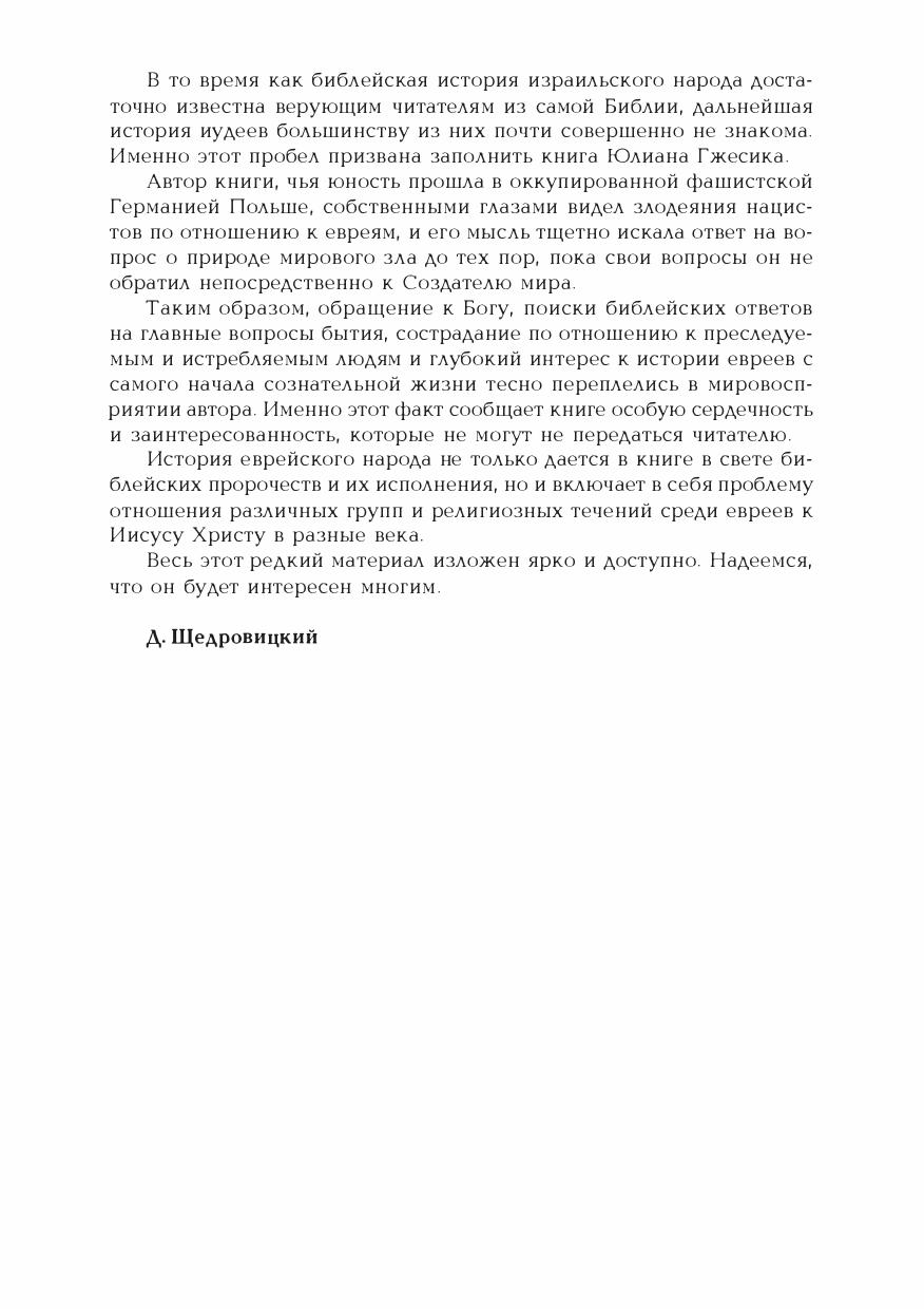 Книга польского теолога и историка Юлиана Гжесика в оригинале называется «Алия Израиля». «Алия» — по-древнееврейски «восхождение». Автор употребляет это слово как в прямом смысле, так и иносказательно, обозначая не только возвращение евреев в Израиль, но и возвышение души народа, стремящегося найти своего Бога и воссоединиться с ним. Книга Юлиана Гжесика — интереснейший и целостный источник сведений по истории еврейского народа со времен Иудейской войны против Рима (66-73 гг. н. э.) и до наших дней. Особое достоинство книги в том, что все исторические события соотнесены в ней непосредственно со свидетельствами библейских пророчеств, зримо воплощающихся в судьбе древнейшего на земле народа.