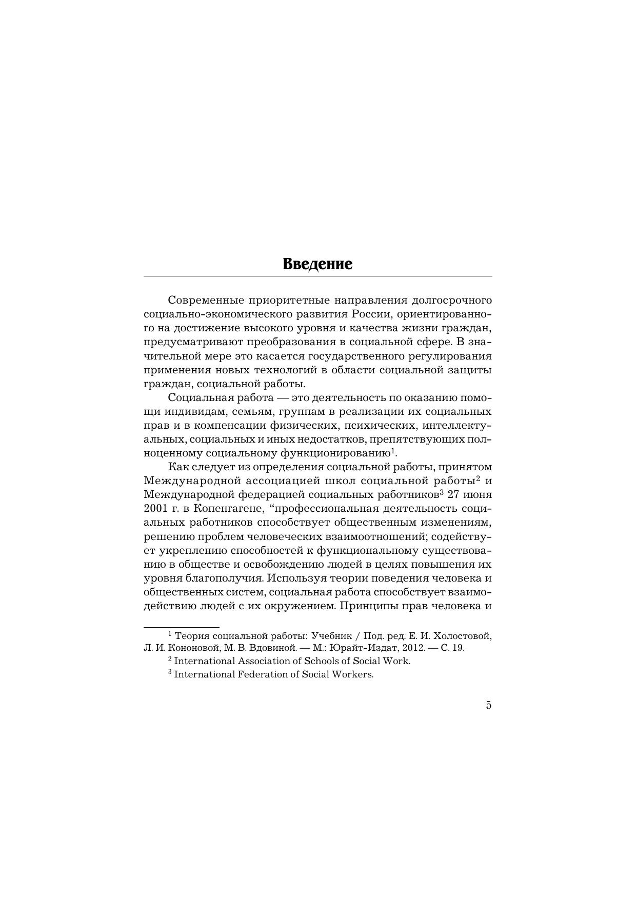 Учебник составлен с учетом требований Федерального государственного образовательного стандарта высшего профессионального образования третьего поколения, направленного на формирование как общекультурных, так и профессиональных компетенций специалистов по социальной работе.