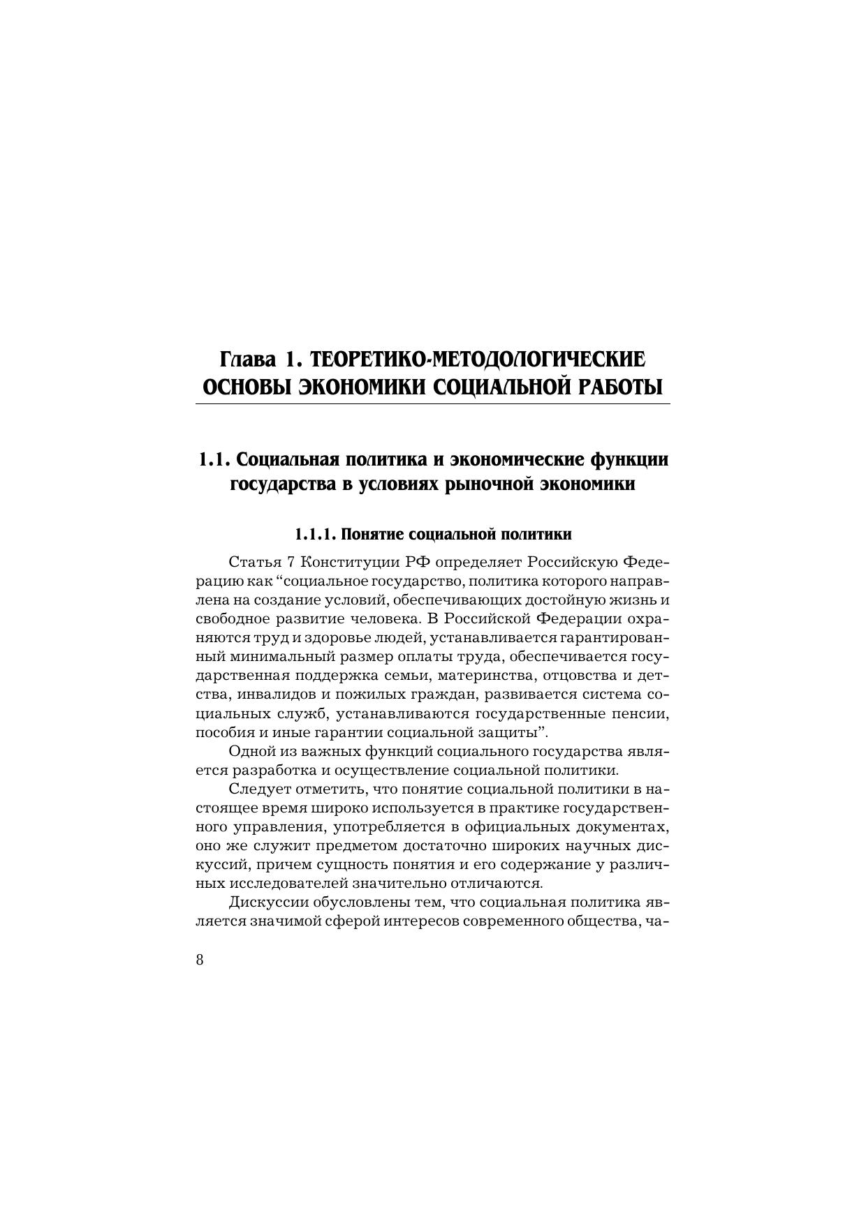 В нем рассмотрены теоретико-методологические аспекты экономики социальной работы, ее финансово-экономические основы. Внимание уделяется организации экономической деятельности социальных учреждений. Анализируются экономические механизмы реализации социальной защиты и организации социальных работ, представлены характеристики социальных услуг, оказываемых населению.