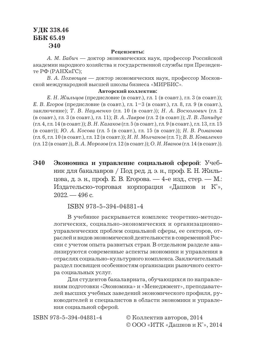 В учебнике раскрывается комплекс теоретико-методологических, социально-экономических и организационно-управленческих проблем социальной сферы, ее секторов, отраслей и видов экономической деятельности в современной России с учетом опыта развитых стран. В отдельном разделе анализируются современные аспекты экономики и управления в отраслях социально-культурного комплекса. Заключительный раздел посвящен особенностям организации рыночного сектора социальных услуг. Для студентов бакалавриата, обучающихся по направлениям подготовки «Экономика» и «Менеджмент», преподавателей высших учебных заведений экономического профиля, руководителей и специалистов в области экономики и управления социальной сферой.