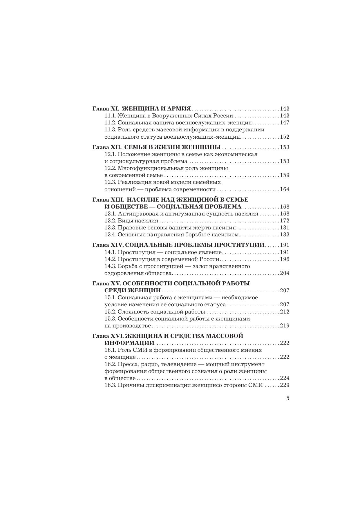 Учебник написан в соответствии с требованиями Государственного образовательного стандарта по специальности "Социальная работа". В нем рассмотрены многочисленные аспекты социально-экономического, политического и духовного положения женщин в России, даны рекомендации по эгалитарному решению проблем, существующих в обществе. Для студентов, аспирантов, преподавателей, а также тех, кто занимается проблемами равенства женщин и мужчин, реализации тендерной политики и ликвидации "двойного стандарта".