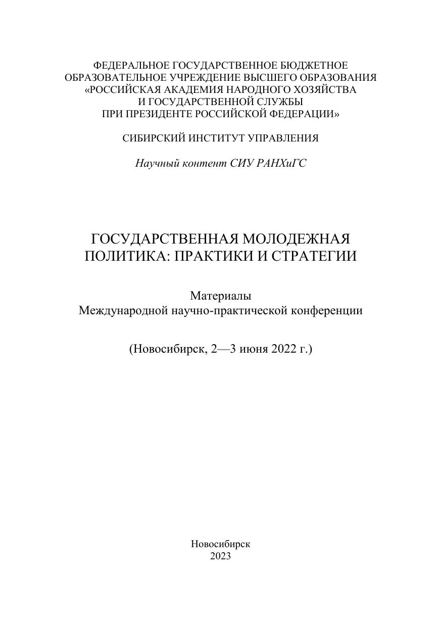 Государственная молодежная политика: практики и стратегии: материалы Междунар. науч.-практ. конф. (Новосибирск, 2—3 июня 2022 г.)
