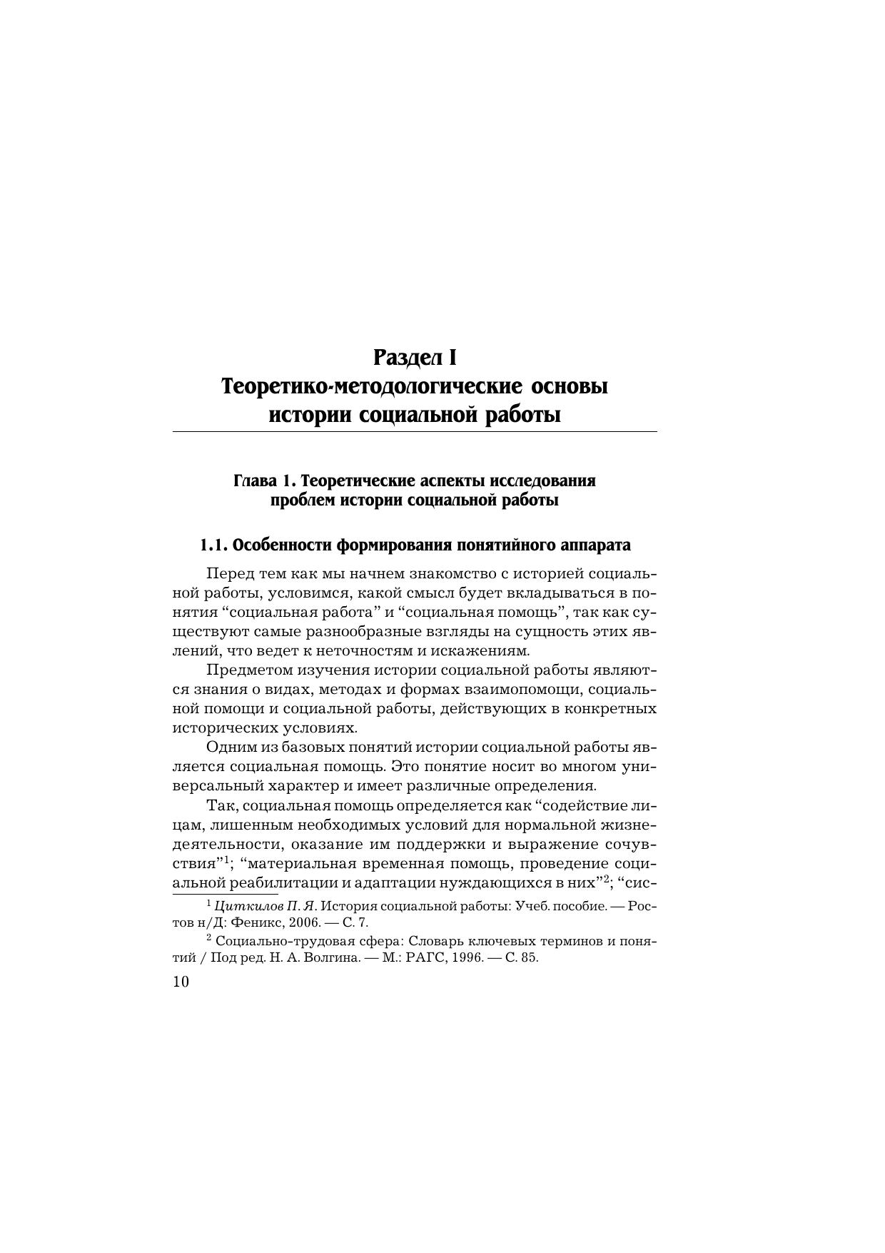 В учебном пособии анализируется процесс возникновения и развития социальной работы как практической стороны социальной помощи, рассматриваются особенности формирования институтов - субъектов социальной помощи и генерируемые ими субъектно-объектные отношения.