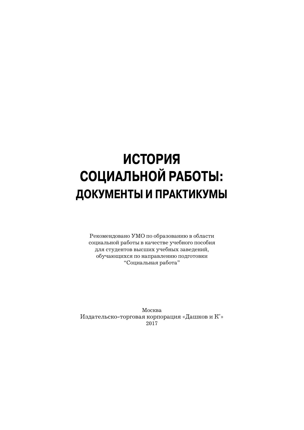 Учебное пособие содержит документальные источники конца XIX- начала XX вв., а также практикумы, задания которых нацелены на активизацию изучения материалов, характеризующих историю социально-помогающей деятельности в России и ее регионах на рубеже веков.