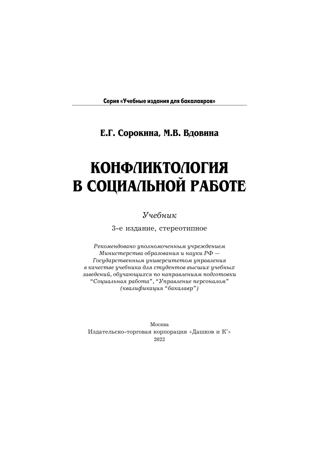В учебнике раскрываются социальная природа конфликта и его особенности, рассматриваются структура и этапы развития конфликта. Особое внимание уделяется управлению конфликтами в социальной работе, методикам разрешения конфликтов в процессе социальной работы. Для студентов бакалавриата, обучающихся по направлениям подготовки “Социальная работа”, “Управление персоналом”, а также специалистов по социальной работе.