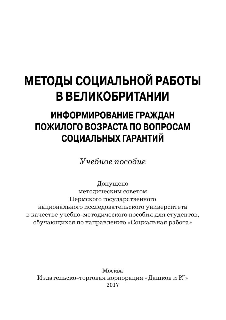 Методы социальной работы в Великобритании: информирование граждан пожилого возраста по вопросам социальных гарантий: Учебное пособие