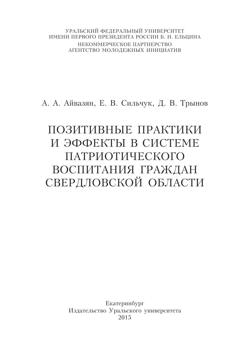 Позитивные практики и эффекты в системе патриотического воспитания граждан свердловской области: монография