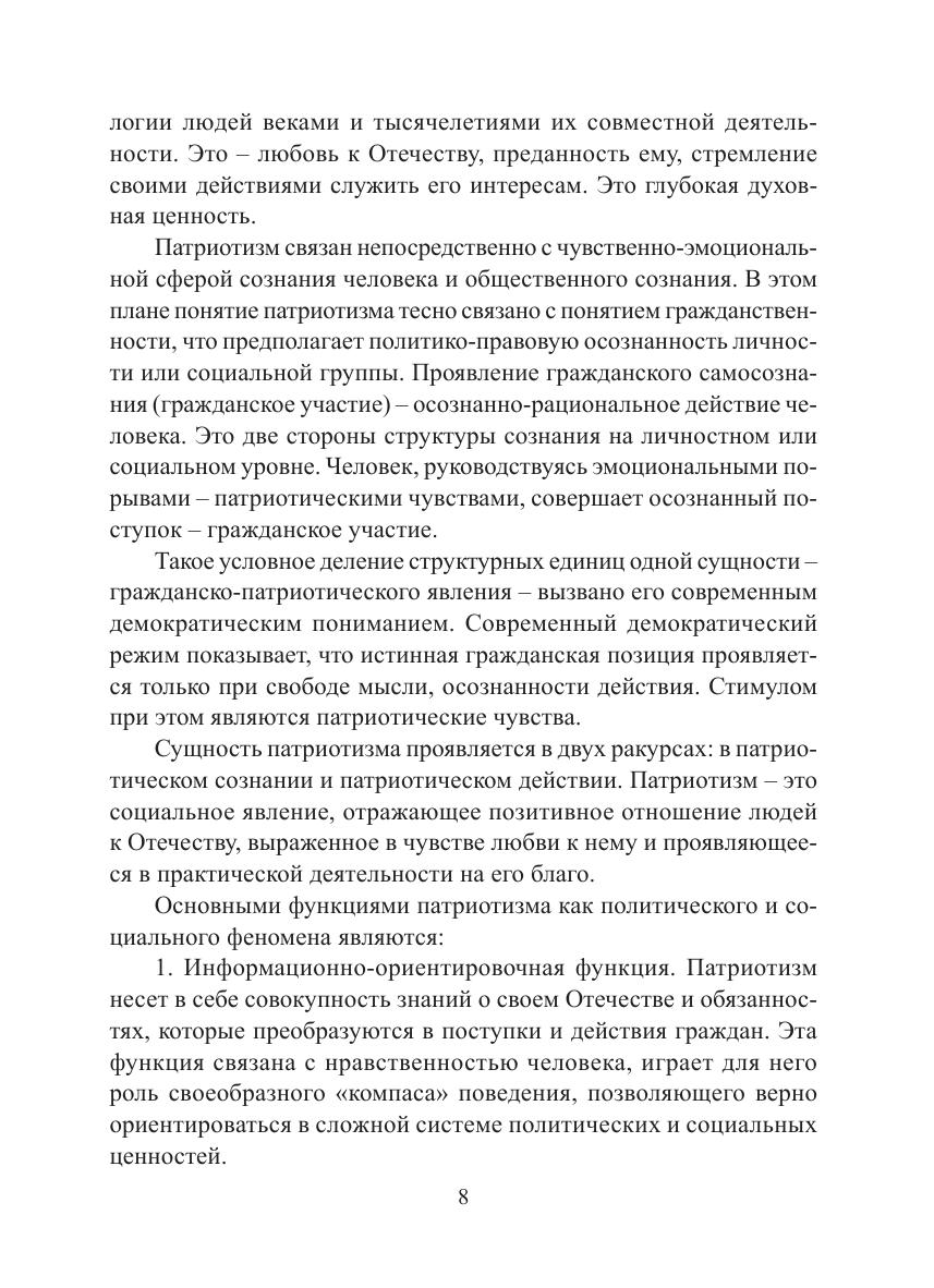 В монографии представлен анализ системы патриотического воспитания граждан Свердловской области на современном этапе. В качестве ключевой рассматривается проблема воздействия мероприятий патриотической направленности, также анализируются проблемы определения и возможные подходы к оценке их эффективности. Методом экспертного интервью выявляются наиболее успешные и распространенные практики патриотического воспитания граждан. Адресована работникам государственной молодежной политики, ученым, специалистам системы патриотического воспитания, а также всем интересующимся проблемами патриотического воспитания.
