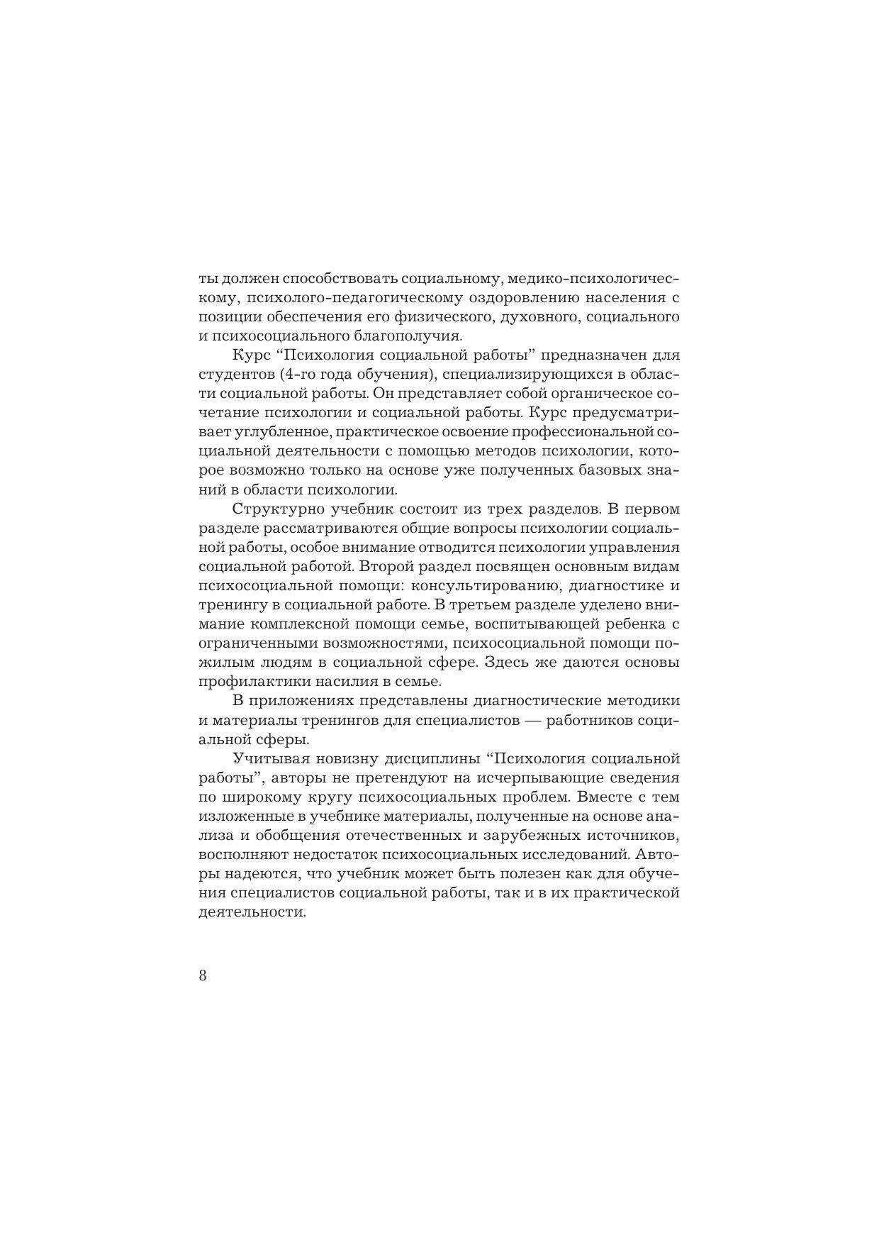 В учебнике раскрываются теоретико-методологические и практико-ориентированные аспекты психосоциальной работы в ее основных направлениях. Представлены методы, виды психосоциальной работы в социальной сфере. Особое внимание уделено кризисной психосоциальной помощи уязвимым группам населения: пожилым людям, семьям, имеющим детей с ограничениями здоровья. Освещаются основы диагностики, консультирования и тренинговой работы в социальной сфере. Для студентов бакалавриата, обучающихся по направлению подготовки “Социальная работа”, преподавателей, специалистов, работающих в учреждениях социальной сферы.