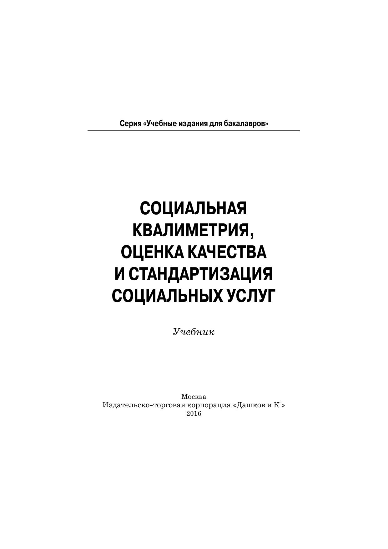 Социальная квалиметрия: оценка качества и стандартизация социальных услуг: Учебник для бакалавров