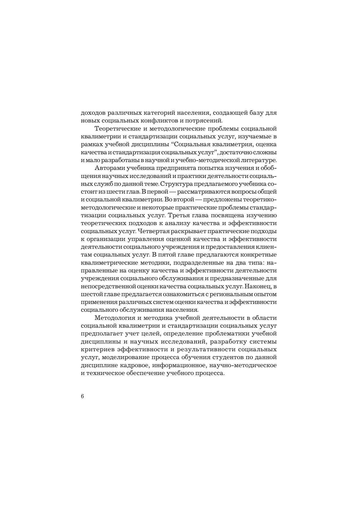 В учебнике описаны методики оценки качества и эффективности деятельности учреждений социального обслуживания и предоставления социальных услуг клиентам, широко освещается опыт регионов Российской Федерации в изучаемой области.