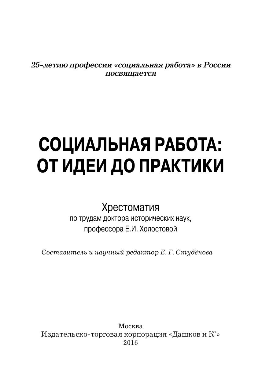 Социальная работа: от идеи до практики. Хрестоматия по трудам Е.И.Холостовой