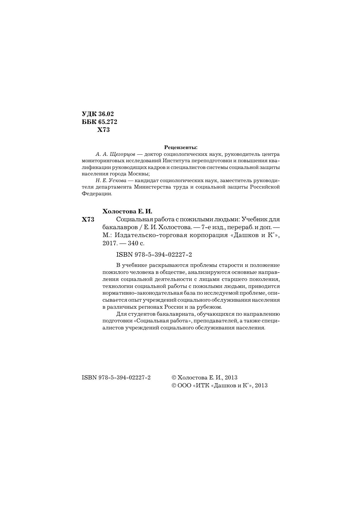 В учебнике раскрываются проблемы старости и положение пожилого человека в обществе, анализируются основные направления социальной деятельности с лицами старшего поколения, технологии социальной работы с пожилыми людьми, приводится нормативно-законодательная база по исследуемой проблеме, описывается опыт учреждений социального обслуживания населения в различных регионах России и за рубежом. Для студентов бакалавриата, обучающихся по направлению