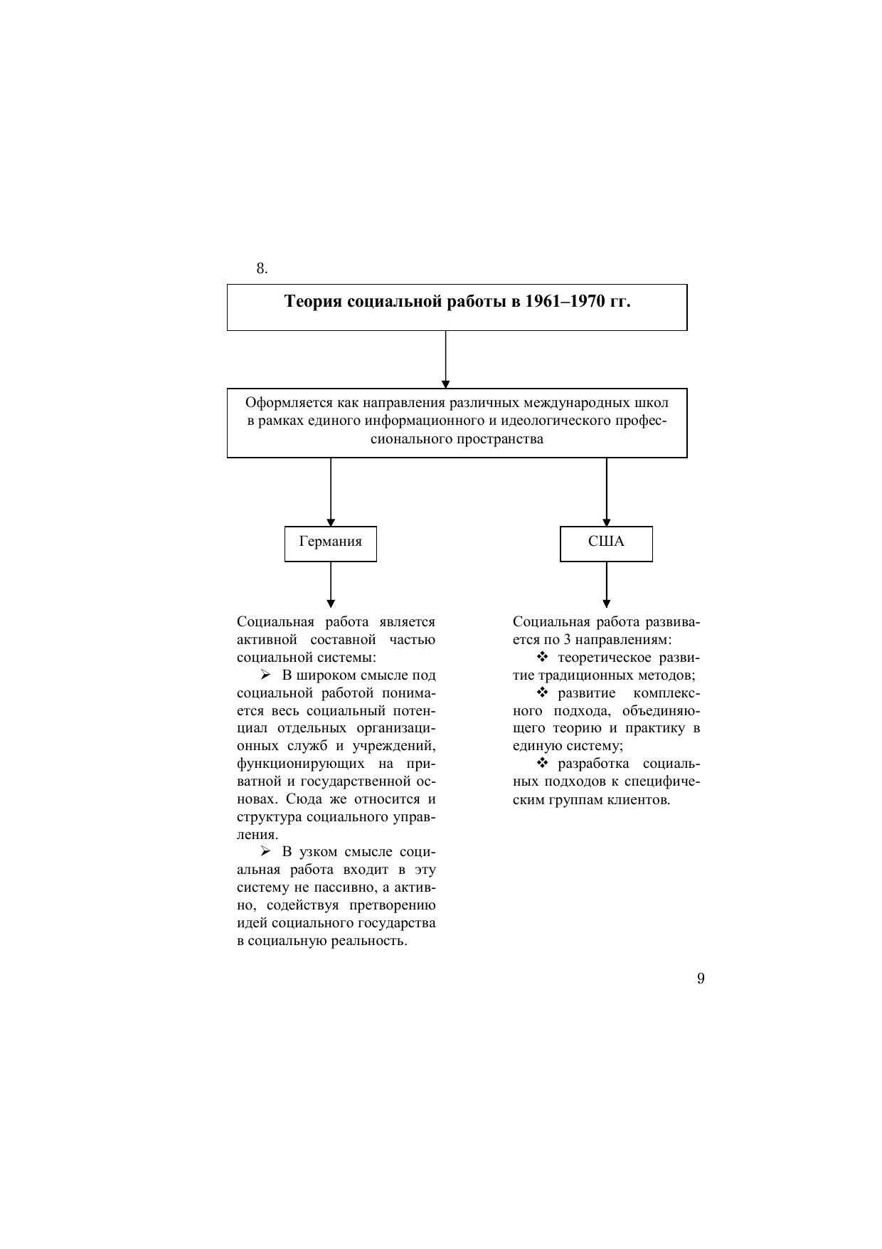 Учебное пособие отражает основные вопросы и проблемы по истории, теории, технологии, менеджменту социальной работы в схемах и соответствует требованиям Государственного образовательного стандарта высшего образования по специальности “Социальная работа”. Для студентов гуманитарных вузов, преподавателей, ведущих подготовку и переподготовку специалистов по данному направлению, а также для специалистов социальной сферы.