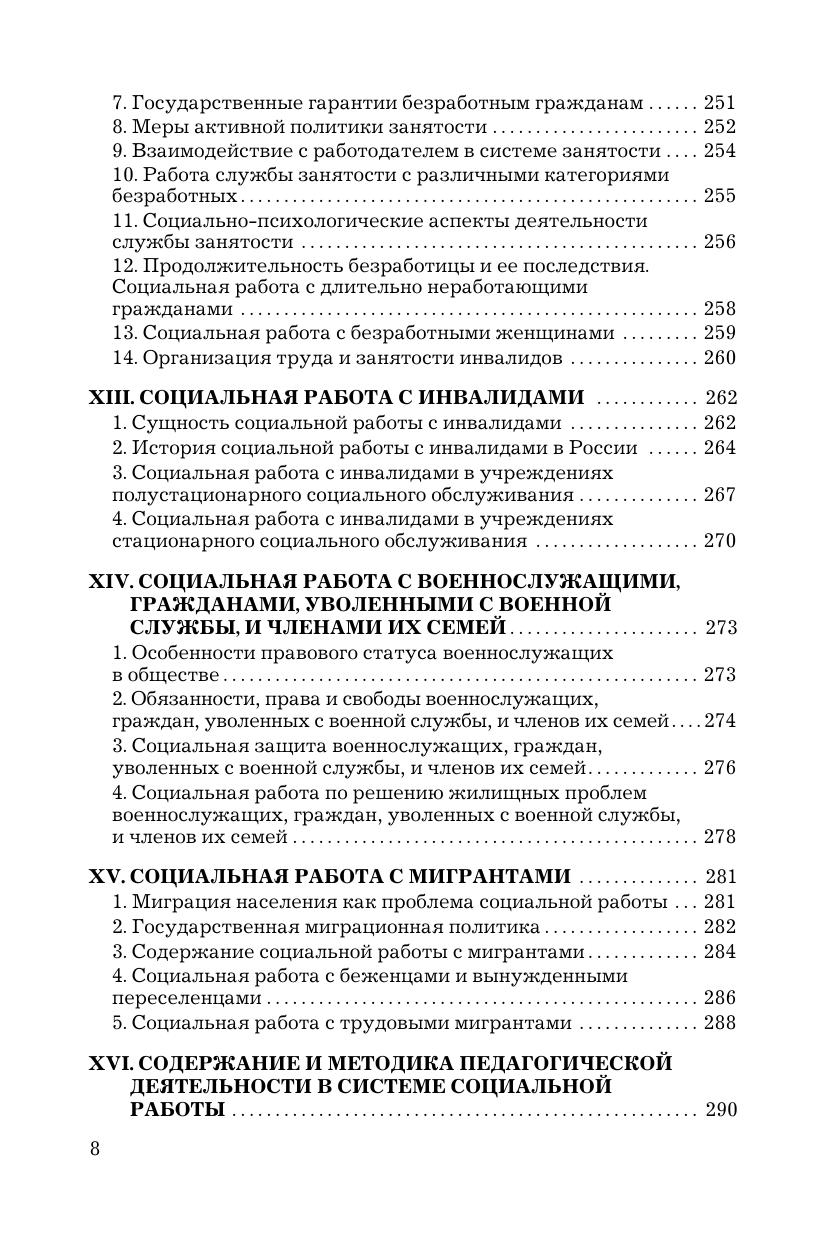 В учебном пособии раскрываются основы истории, теории и технологии социальной работы, содержание социальной работы с гражданами пожилого возраста, молодежью, безработными, мигрантами, инвалидами, военнослужащими. Особое внимание уделено прогнозированию, проектированию и моделированию социальной работы, ее профессионально-этическим аспектам, а также содержанию и методике психо-социальной и педагогической деятельности в системе социальной работы.