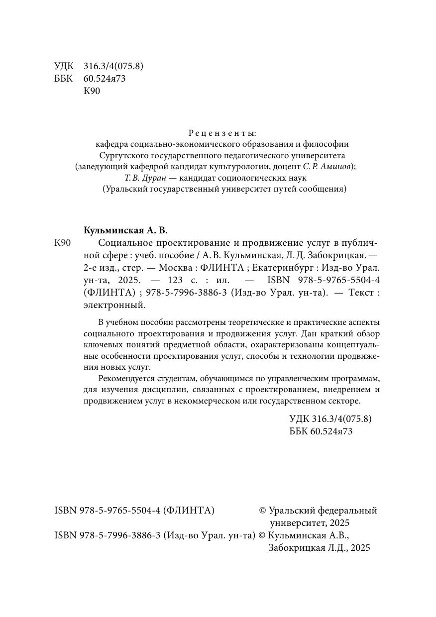 В учебном пособии рассмотрены теоретические и практические аспекты социального проектирования и продвижения услуг. Дан краткий обзор ключевых понятий предметной области, охарактеризованы концептуальные особенности проектирования услуг, способы и технологии продвижения новых услуг.