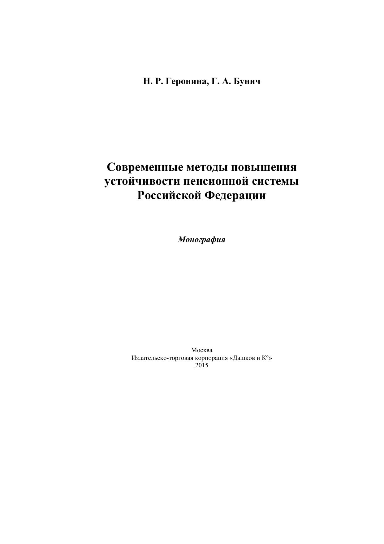 Современные методы повышения устойчивости пенсионной системы РФ: монография