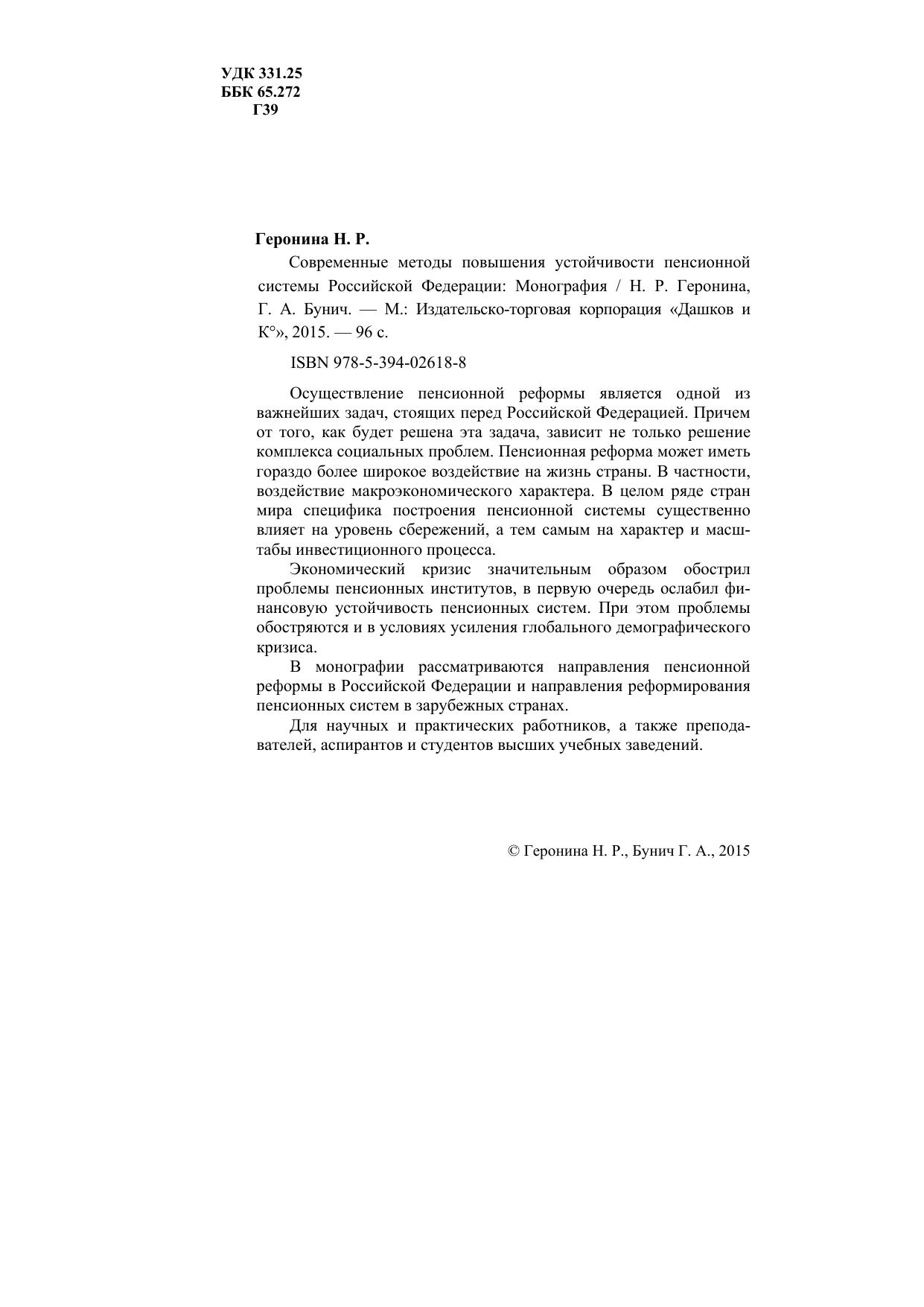 Осуществление пенсионной реформы является одной из важнейших задач, стоящих перед Российской Федерацией. Причем от того, как будет решена эта задача, зависит не только решение комплекса социальных проблем. Пенсионная реформа может иметь гораздо более широкое воздействие на жизнь страны. В частности, воздействие макроэкономического характера. В целом ряде стран мира специфика построения пенсионной системы существенно влияет на уровень сбережений, а тем самым на характер и масштабы инвестиционного процесса. Экономический кризис значительным образом обострил проблемы пенсионных институтов, в первую очередь ослабил финансовую устойчивость пенсионных систем. При этом проблемы обостряются и в условиях усиления глобального демографического кризиса. В монографии рассматриваются направления пенсионной реформы в Российской Федерации и направления реформирования пенсионных систем в зарубежных странах. Для научных и практических работников, а также преподавателей, аспирантов и студентов высших учебных заведений.