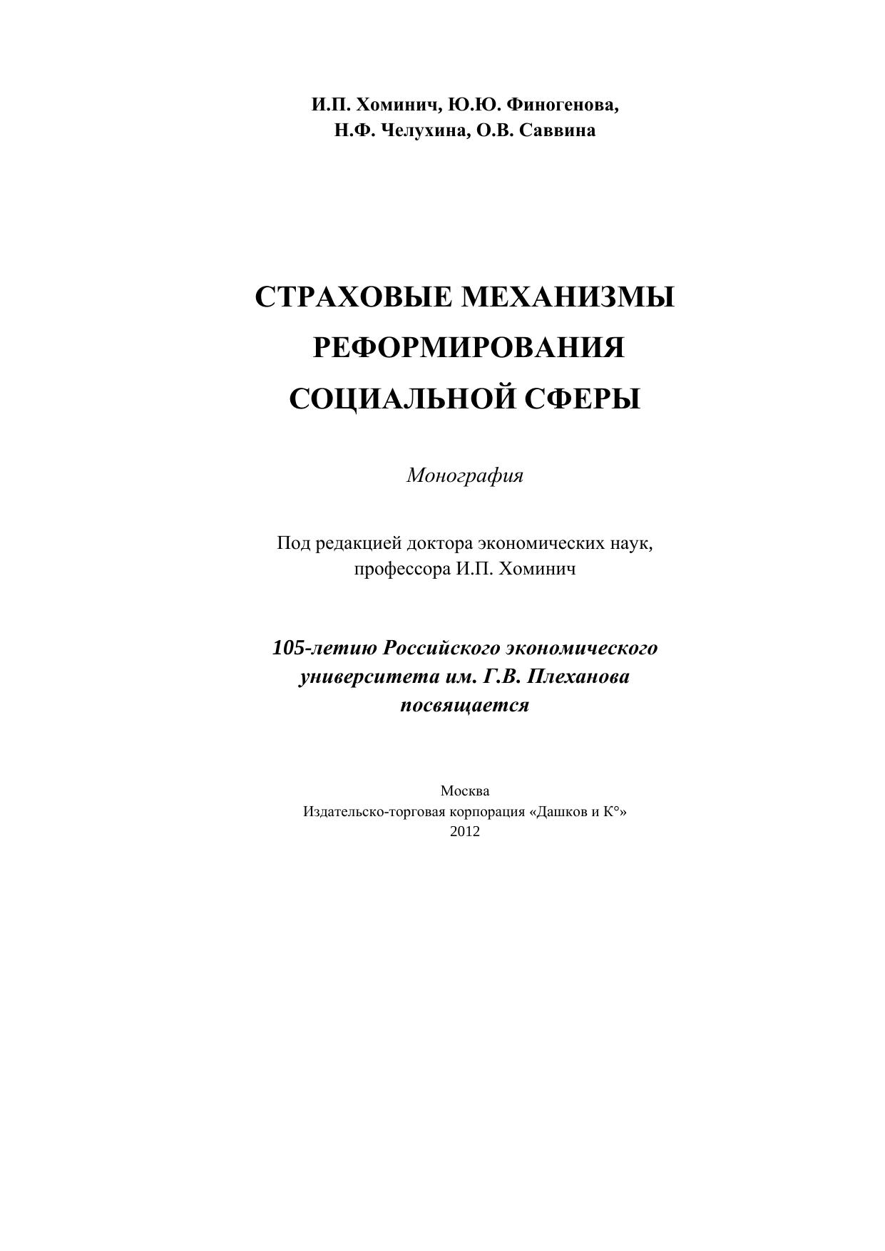 Страховые механизмы реформирования социальной сферы: Монография