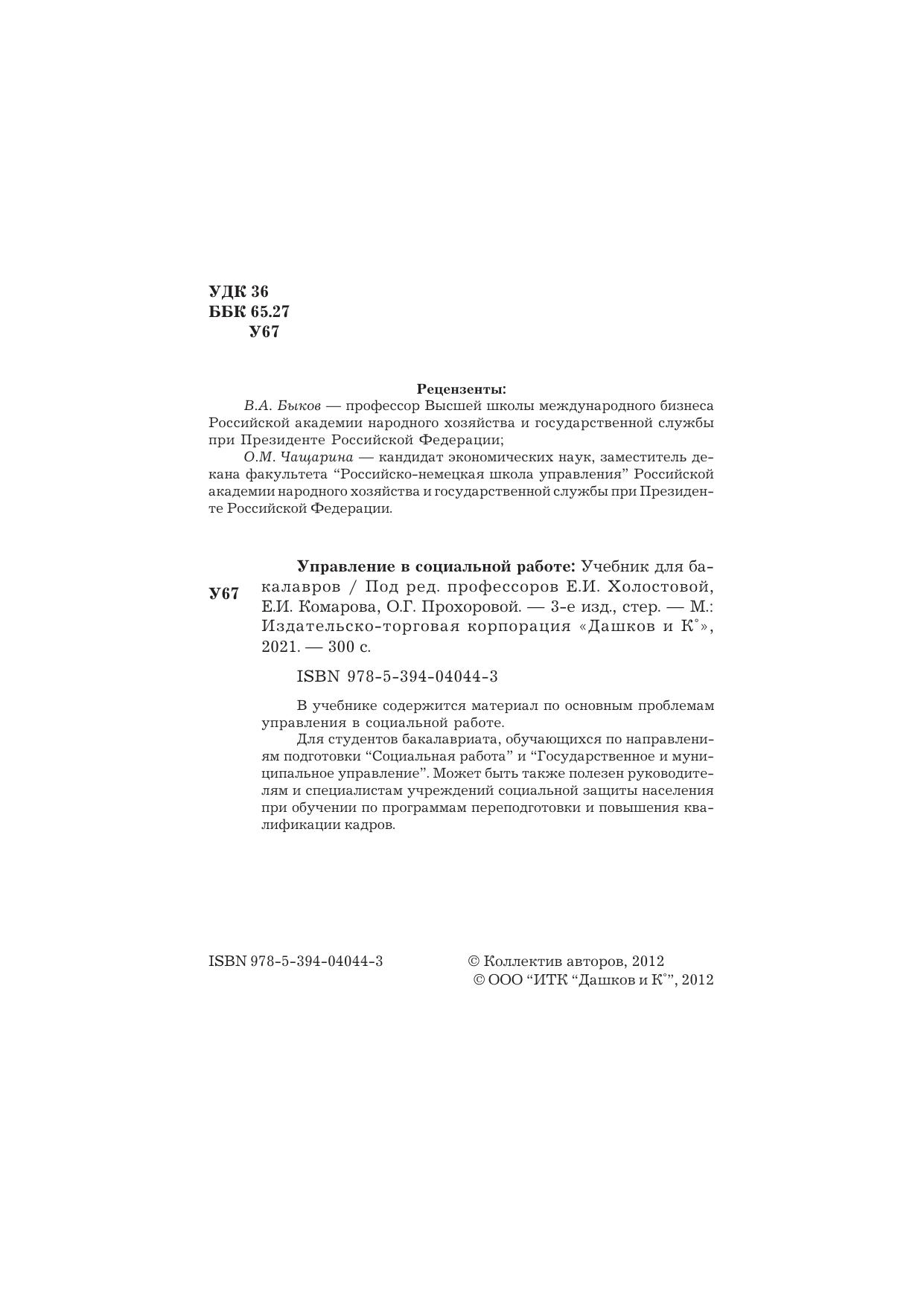 Учебник подготовлен преподавателями Института переподготовки и повышения квалификации руководящих кадров и специалистов системы социальной защиты населения г. Москвы (ИПК ДСЗН) в соответствии с Государственным образовательным стандартом. В нем содержится материал по основным проблемам управления в социальной работе. Для студентов бакалавриата, обучающихся по направлениям подготовки “Социальная работа” и “Государственное и муниципальное управление”. Может быть также полезен руководителям и специалистам учреждений социальной защиты населения при обучении по программам переподготовки и повышения квалификации кадров.