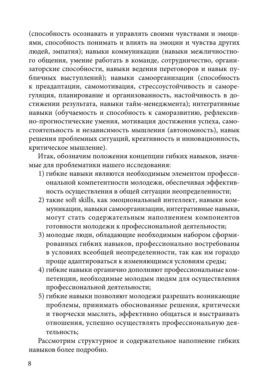В первой части представлены характеристика и структура гибких навыков молодежи: эмоциональный интеллект, коммуникативные и интегративные навыки, а также навыки самоорганизации.