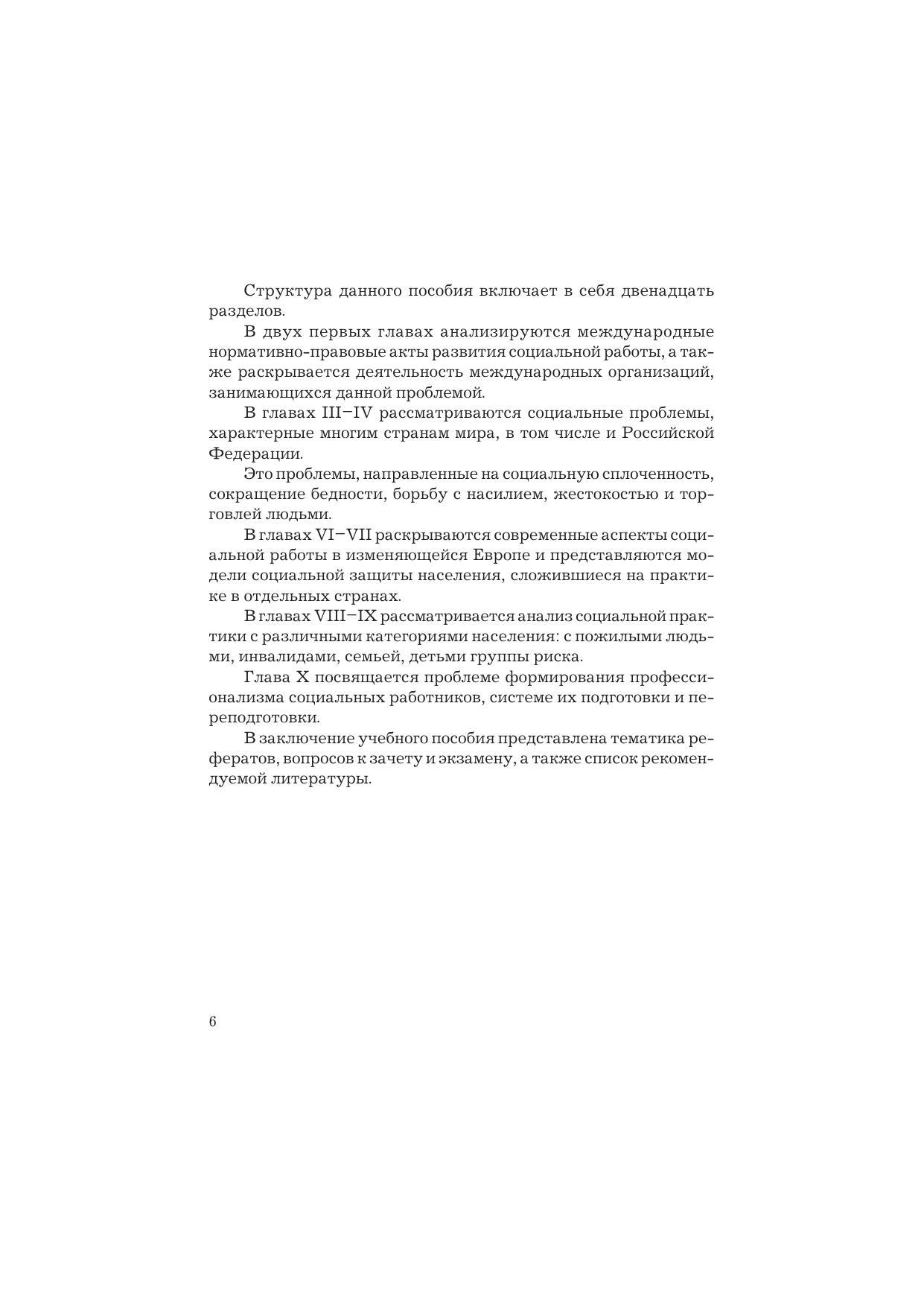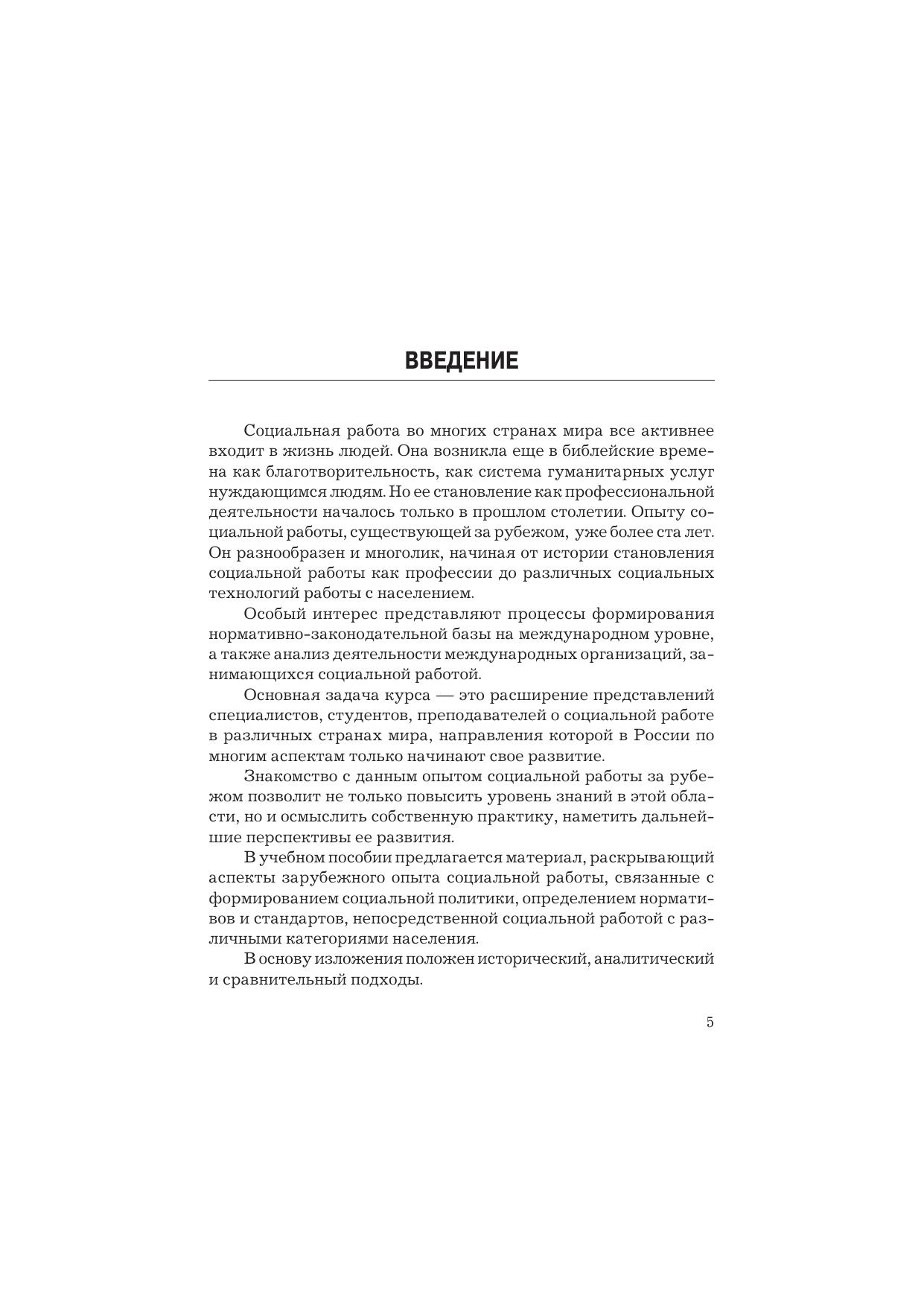 В учебном пособии рассматриваются вопросы становления социальной работы за рубежом, модели социального обслуживания населения в странах Европы и США, развития социальных услуг, предоставляемых различным категориям населения. Особое место отводится международным нормативно-правовым актам по вопросам социальной работы, формированию профессионализма социальных работников. Для студентов высших учебных заведений, обучающихся по направлению подготовки «Социальная работа», а также слушателей формы дополнительного образования, практиков и специалистов органов социальной защиты населения.