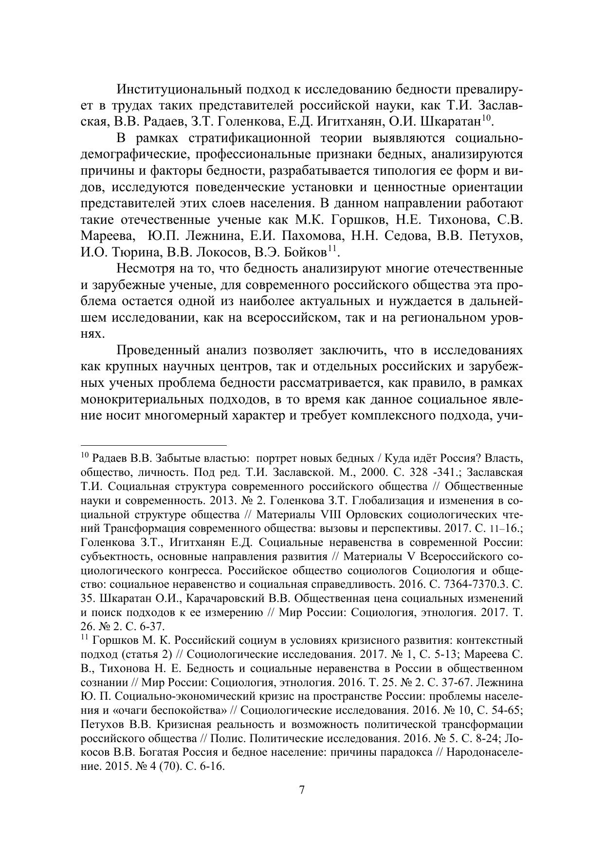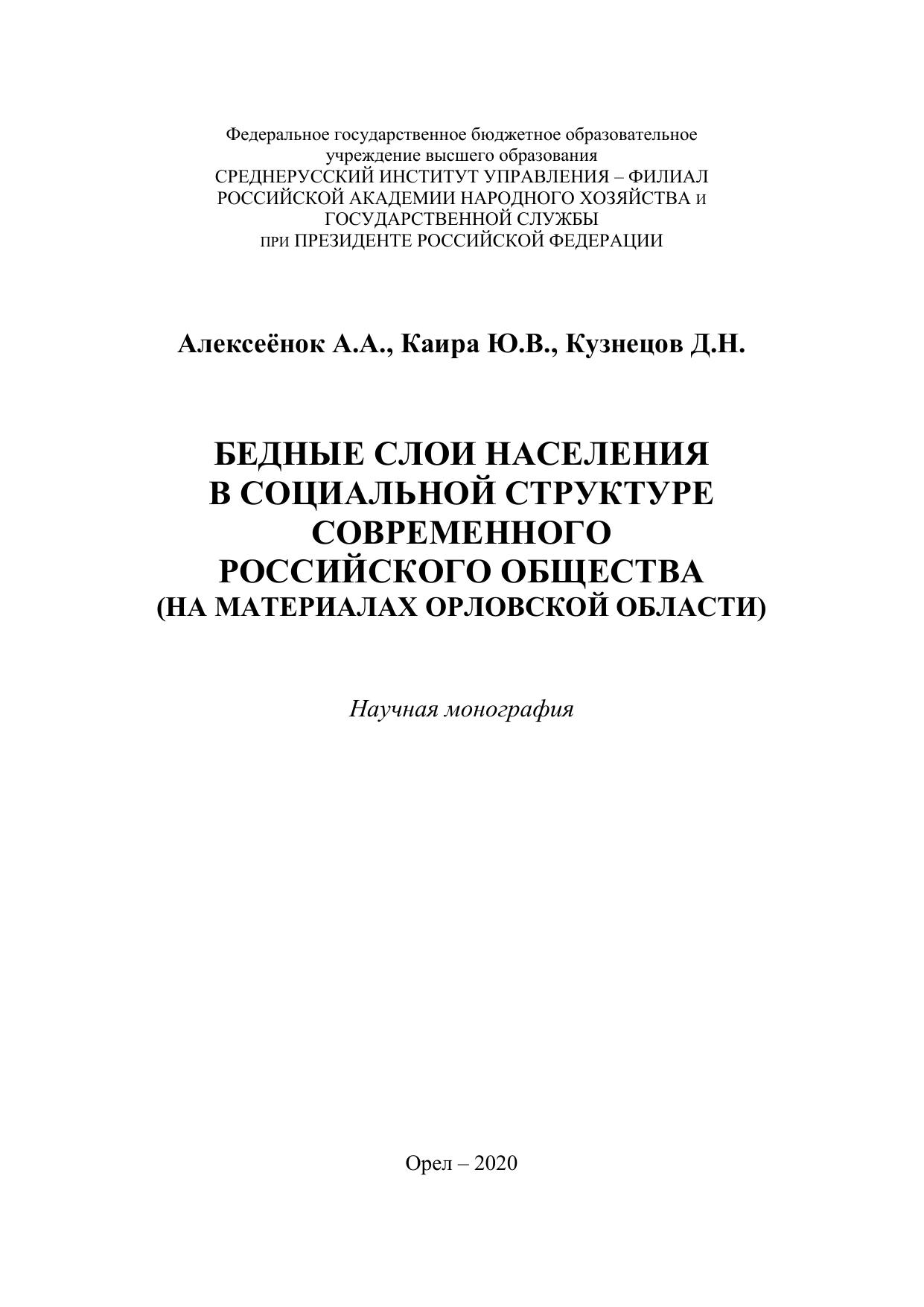 Бедные слои населения в социальной структуре современного российского общества (на материалах Орловской области)