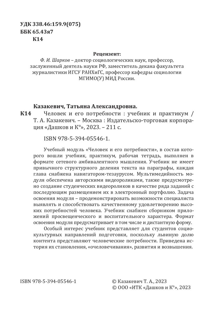 Особый интерес учебник представляет для студентов социокультурных направлений подготовки, поскольку львиную долю контента представляют человеческие потребности. Приведена история их становления, «очеловечивания», развития и возвышения.