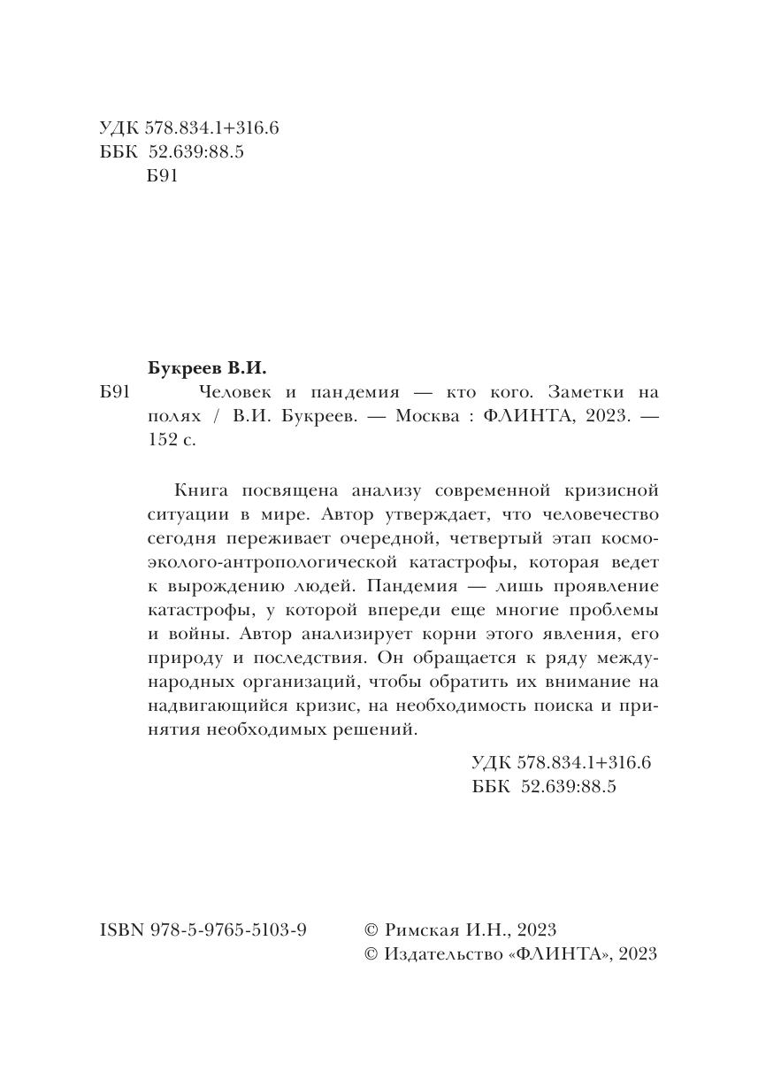 Книга посвящена анализу современной кризисной ситуации в мире. Автор утверждает, что человечество сегодня переживает очередной, четвертый этап космо-эколого-антропологической катастрофы, которая ведет к вырождению людей. Пандемия — лишь проявление катастрофы, у которой впереди еще многие проблемы и войны. Автор анализирует корни этого явления, его природу и последствия. Он обращается к ряду международных организаций, чтобы обратить их внимание на надвигающийся кризис, на необходимость поиска и принятия необходимых решений.