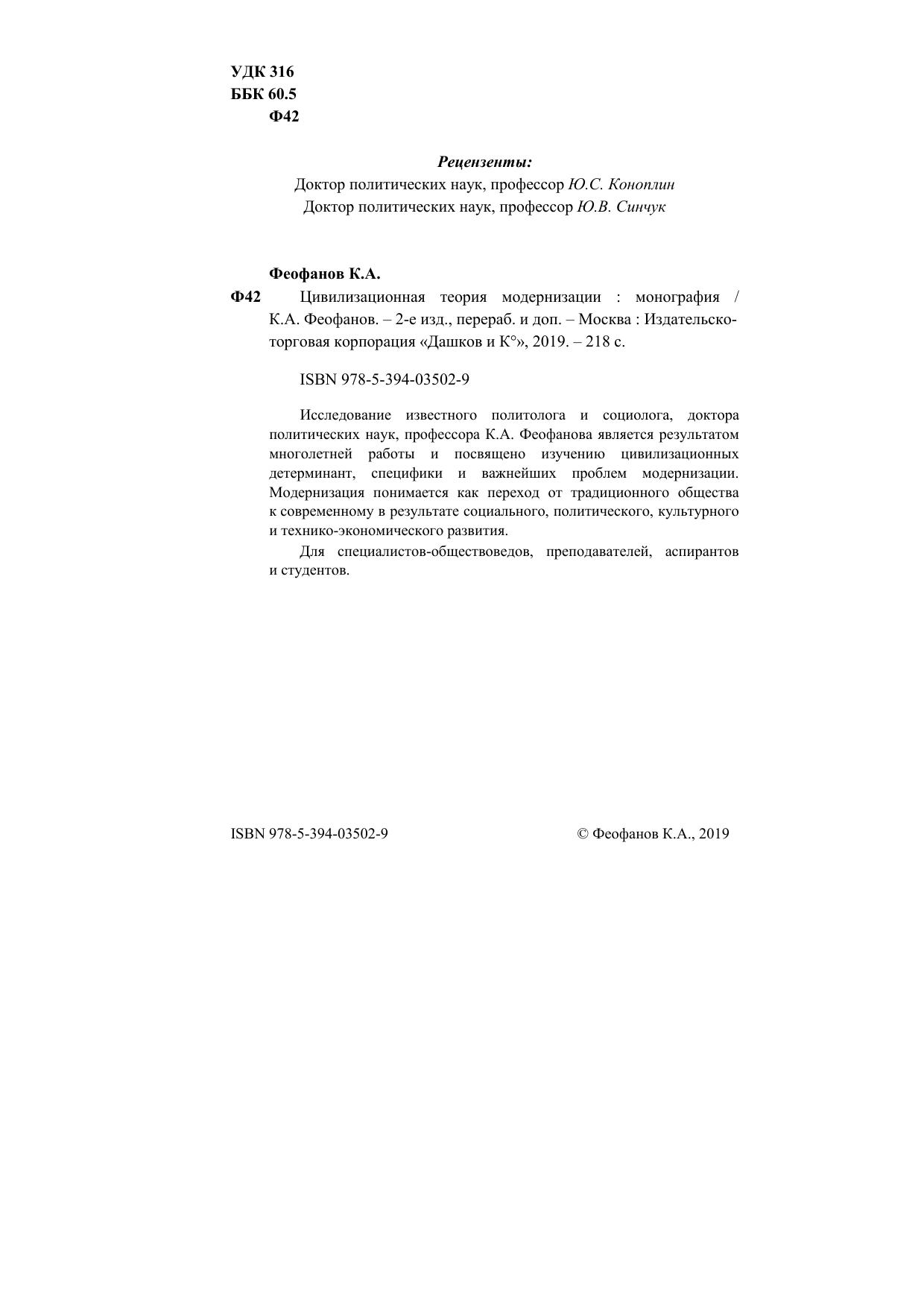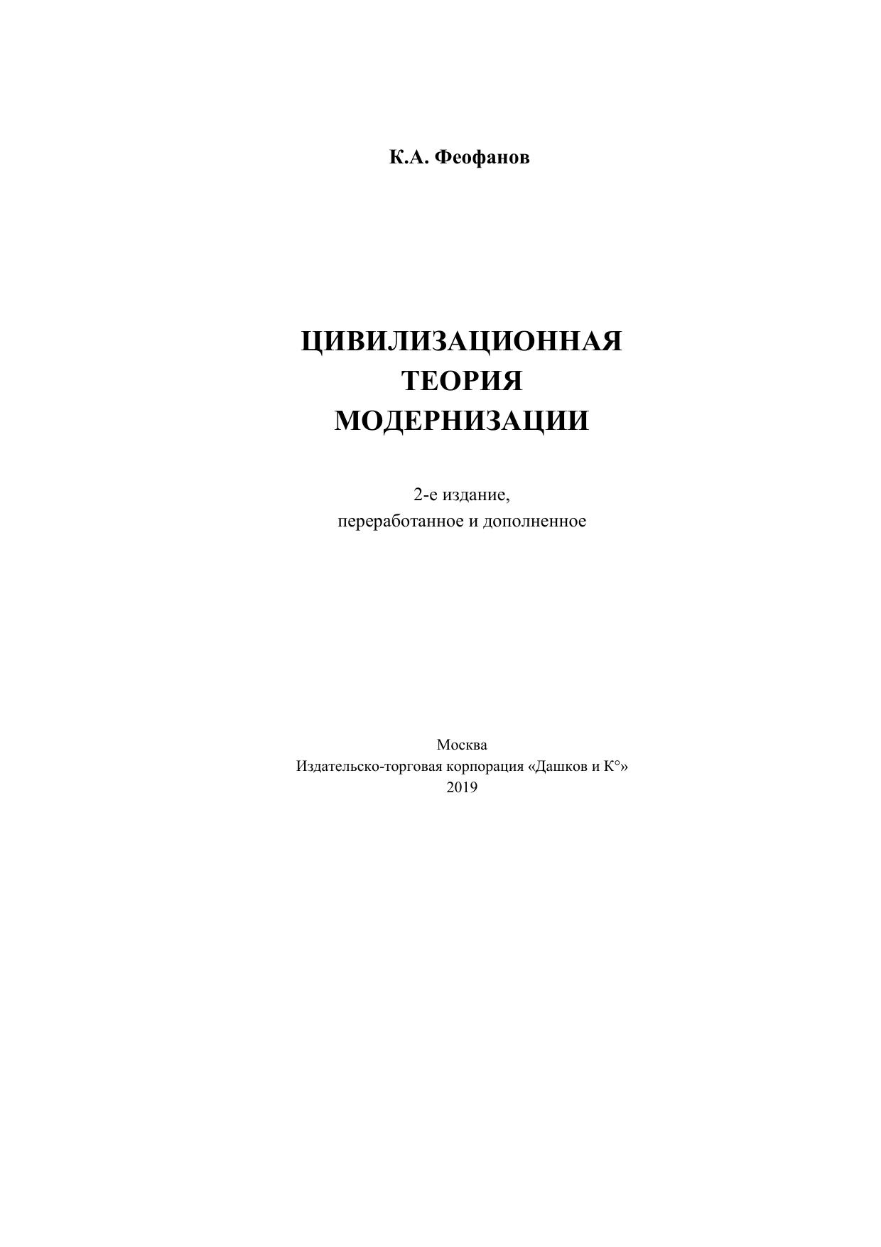Исследование известного политолога и социолога, доктора политических наук, профессора К.А. Феофанова является результатом многолетней работы и посвящено изучению цивилизационных детерминант, специфики и важнейших проблем модернизации. Модернизация понимается как переход от традиционного общества к современному в результате социального, политического, культурного и технико-экономического развития. Для специалистов обществоведов, преподавателей, аспирантов и студентов.