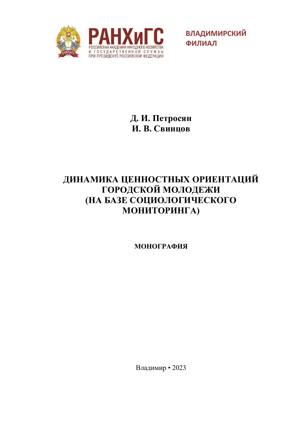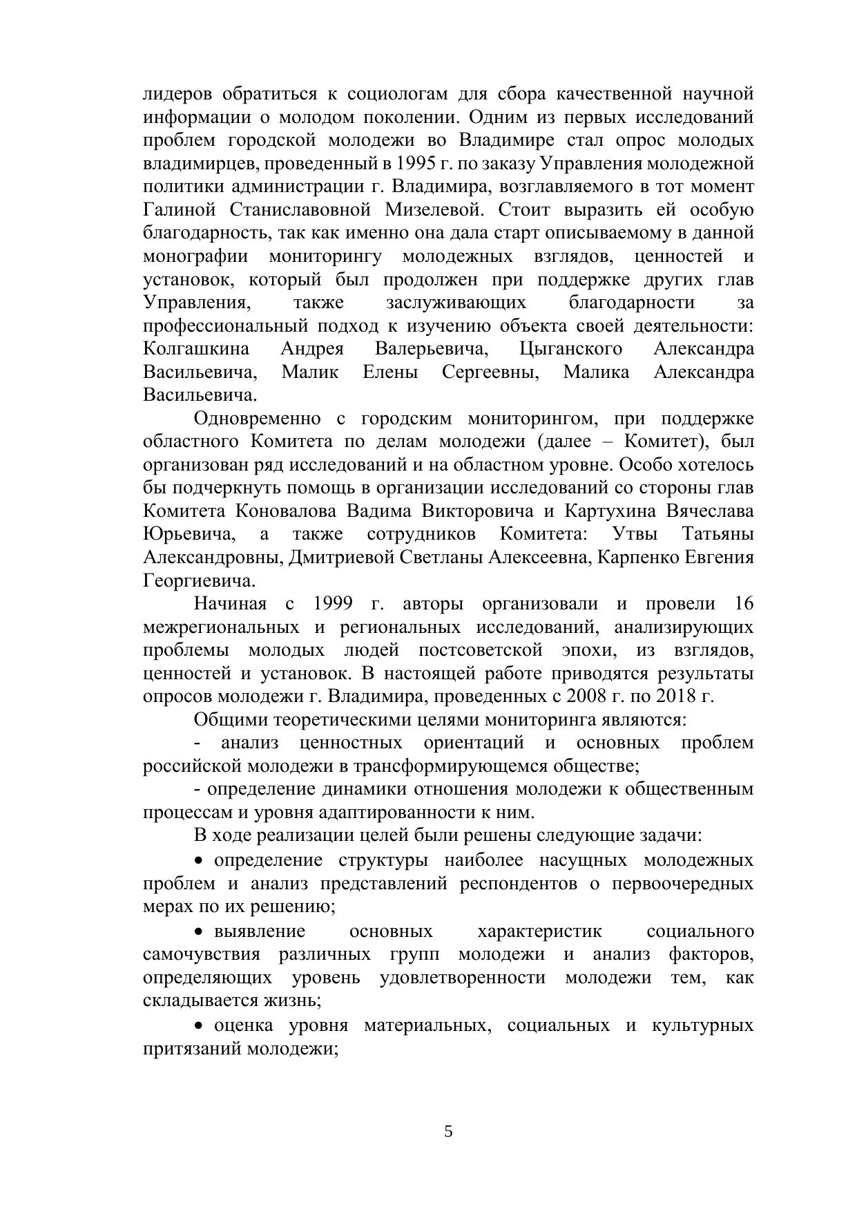 Для качественной работы с молодежью не хватает информации о ней. Данная потребность побудила молодежных лидеров обратиться к социологам для сбора качественной научной информации о молодом поколении. В настоящей работе приводятся результаты опросов молодежи г. Владимира, проведенных с 2008 по 2018 г. Основной прикладной целью исследования явилось создание информационной базы для наиболее эффективной разработки и реализации молодежной политики. Печатается по решению ученого совета Владимирского филиала РАНХиГС